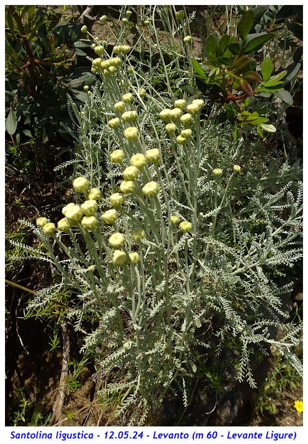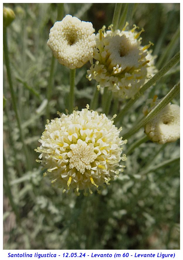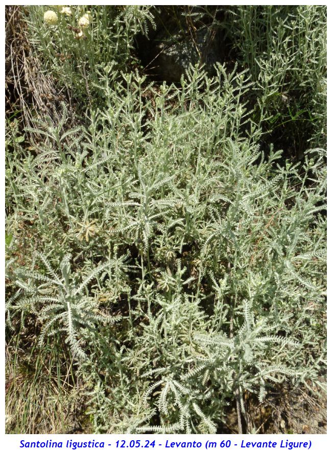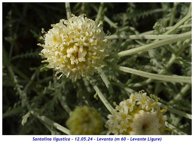 Nome scientifico: Santolina ligustica Arrigoni Famiglia: Asteraceae Altro nome comune: Santolina ligure Habitat naturale: Garighe, prati e pendii sassosi e soleggiati su substrato ofiolitico da 0 a 600 metri. Endemismo in senso stretto di un tratto limitato della Riviera di Levante compreso tra Framura, Bonassola, Levanto e Monterosso. Nel complesso la specie interessa un’area estesa non oltre 15 kmq con stazioni tra loro frazionate e una popolazione stimata in circa 30000 individui. Periodo di fioritura: Da maggio a luglio Descrizione della pianta: Pianta cespugliosa alta 10 – 60 cm legnosa alla base, con fusti e foglie cenerini e pubescenti. Fanno eccezione le foglie appena nate in quanto glabre e verdi. Le foglie, lunghe 1 – 4 cm, sono lineari e divise in lacinie filiformi di 2 – 4 mm disposte su 2 – 4 file. Sono sostenute da sottili piccioli lunghi 4 – 12 mm. I capolini sono posti all’apice di peduncoli eretti lunghi 15 – 25 cm, fogliosi nella parte inferiore; sono formati da fiori tubulosi di colore bianco crema e presentano diametro di 4 – 8 mm. Le squame dell’involucro sono farinoso-pubescenti, scarioso-lanose al margine. La corolla è bianca con lobi triangolari acuti e tubo sottile. Note: La specie appare nel complesso in rarefazione soprattutto a causa del ripetersi di incendi nelle zone in cui è presente. Indicata come rara nel Libro Rosso delle Piante d’Italia è stata proposta per essere inclusa come specie gravemente minacciata d’estinzione nell’Allegato II della direttiva comunitaria 43/92. Nella Liguria di Levante è spesso nota come “Canùa” (incanutita) in riferimento al colore dei fusti e delle foglie. Santolina ligustica è specie aromatica usata per allontanare insetti come le tarme dalla biancheria. In medicina è utilizzata per lenire le punture d’insetti e purificare la pelle. Se ne può ricavare un infuso amaro con caratteristiche simili alla camomilla. In Italia il genere Santolina è presente in due areali principali, uno tirrenico e un secondo sardo-corso. Nella regione tirrenica il genere è rappresentato da 4 endemismi che si sono originati per lenta e progressiva differenziazione provocata dall’isolamento geografico ecologico e genetico (schizoendemismo). Oltre a Santolina ligustica abbiamo: 1) Santolina pinnata VIv. Endemica delle Alpi Apuane con capolini bianchi di diametro pari a 5 – 8 mm. Fusti e foglie sono verdi e glabri. 2) Santolina etrusca (Lacaita) Marchi & D’Amato. Presente in Toscana, Umbria e Lazio presenta capolini gialli con diametro di 7 – 10 mm con getti sterili cinerini e getti fertili tra il giallo e il verdastro. 3) Santolina neapolitana Jord. & Fourr. Endemica stretta della Penisola Sorrentina presenta capolini di colore giallo vivo con diametro di 7 – 12 mm e corolla con lobi triangolari acuti. La pianta è pelosa e cinerina. Nell’area sardo-corsa abbiamo due apoendemismi poliploidi di origine ancora non del tutto chiarita: 1) Santolina insularis (Gennari ex Fiori) Arrigoni. Endemica della Sardegna centro merdionale presenta capolini gialli con diametro di 10 – 16 mm, foglie dei getti sterili di 3 – 6 cm e foglie dei getti fertili lunghe 0,5 – 3 cm. 2) Santolina corsica Jord. & Fourr. Presente nella Sardegna centro settentrionale e in Corsica. Presenta capolini di colore giallo vivo con diametro di 7 – 12 mm, foglie con breve picciolo lungo 1 – 4 mm e lacinie lunghe 1 – 3 mm. Dove l’abbiamo osservata: Tutte le fotografie sono state realizzate presso Levanto (m 60 – Levante Ligure). ![]()
