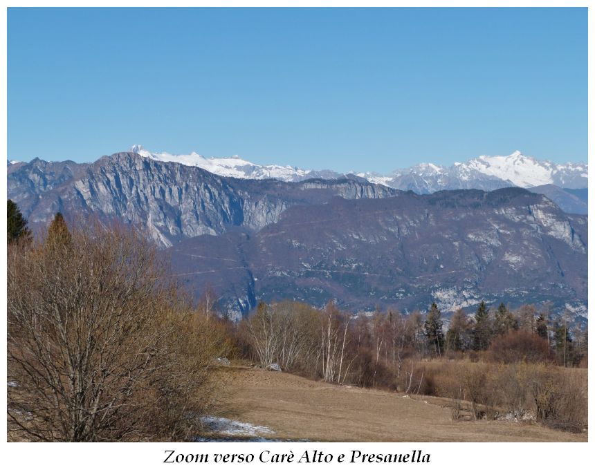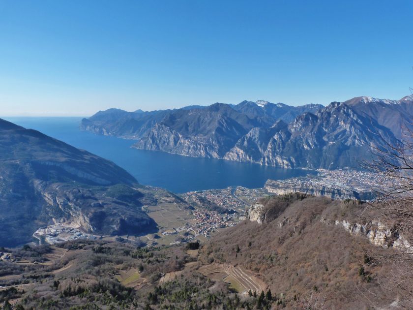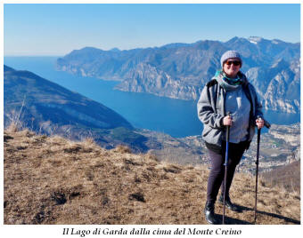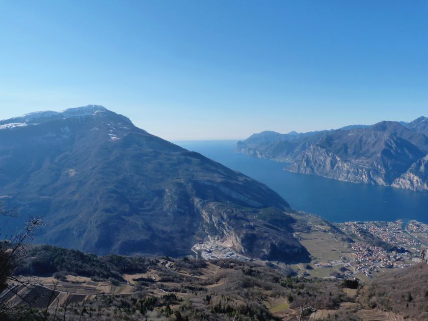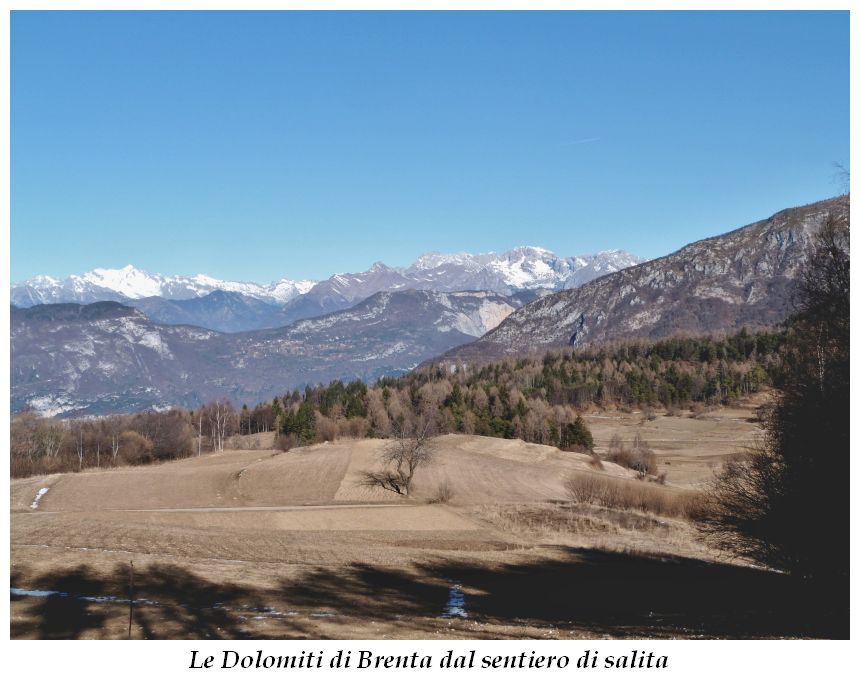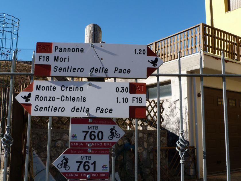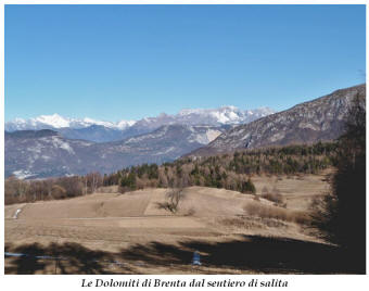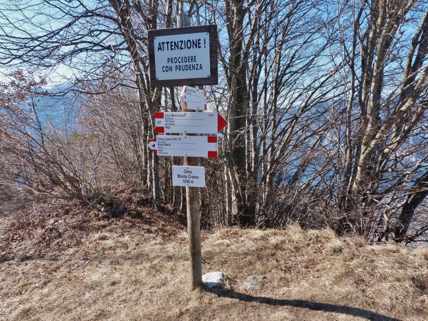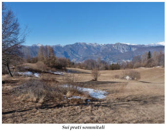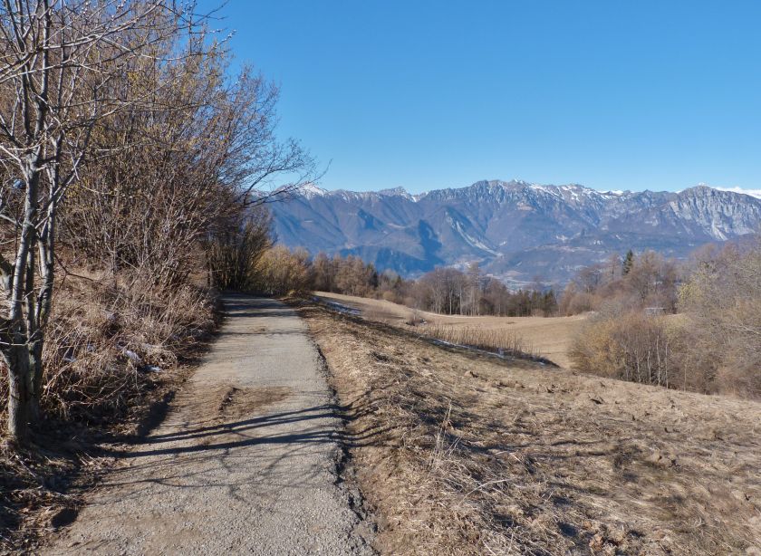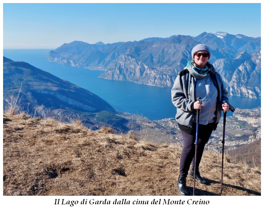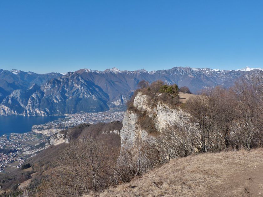 Il percorso che andiamo a descrivervi è uno dei più brevi contenuti in queste pagine eppure il paesaggio che si gode, soprattutto dalla cima del Monte Creino, è uno dei più vasti e avvincenti del circondario. Nelle terse giornate con vento da nord si gode di una vista da favola su tutta la parte settentrionale del lago di Garda. L’interesse dell’escursione non è solo paesaggistico. Presso la cima si possono infatti visitare le trincee e i camminamenti austriaci della prima guerra mondiale di recente ristrutturati permettendo un tuffo nella storia. Sono luoghi sorprendentemente non troppo noti nonostante la grande facilità d’accesso. La camminata, in assenza di neve, è ben percorribile anche nella stagione invernale. É possibile non siate attratti da un percorso così breve. In questo caso potete “aggregare” la salita dei Monti Creino e Brugnolo a quella dell’imponente Monte Stivo riempiendo al meglio una giornata di cammino. L’escursione in breve: Santa Barbara (m 1169) – Monte Creino (m 1290) – Croce Monte Creino (m 1280) – Monte Brugnolo (m 1180) – Santa Barbara (m 1169) Dati tecnici: Partenza dal parcheggio presso l’Albergo Miralago (m 1905): Difficoltà: E (Vai alla scala delle difficoltà). Dislivello assoluto: m 121. Acqua potabile sul percorso: assente Accesso alla partenza: Dalla statale 240 che collega Rovereto a Torbole, in località Loppio, si volge sulla provinciale che transitando per i paesini di Pannone e Varano guadagna il capoluogo comunale di Ronzo-Chienis. Qui troviamo a sinistra l’ulteriore bivio per Arco: in breve saliamo al valico, in località Santa Barbara (m 1181) oltre il quale la strada calerebbe sul versante dell’Archese. In coincidenza del passo possiamo parcheggiare l’automobile. Descrizione del percorso: In coincidenza del Passo di Santa Barbara (m 1169) si stacca verso sud la stradina asfaltata con cartello indicante il Monte Creino ad appena mezz’ora di marcia. Muoviamo in questa direzione su comodo stradello. Dopo la prima semicurva siamo ad una biforcazione dove ignoriamo la strada che si separa sulla destra. Procediamo in debole dislivello tra vasti appezzamenti coltivati con imponente visione dominata dal vicino Monte Stivo ma estesa verso ovest sino al lontano Carè Alto. La strada prosegue eseguendo un tornante verso destra. Poco oltre siamo ad un bivio. Tralasciamo il proseguo dello stradello asfaltato volgendo verso sinistra con cartello indicante Monte Creino (segnavia 637). Su fondo ghiaioso entriamo nella boscaglia in parte a conifere. Da notare la presenza, sui lati della mulattiera, delle realizzazioni artistiche degli alunni delle scuole elementari della valle. Si tratta della rassegna a cielo aperto denominata “Creinarte”. Il tracciato prende quota in moderata pendenza eseguendo un ulteriore tornante quindi l’alberatura diviene meno densa lasciando spazio ad alcuni appezzamenti prativi. Poco oltre vi sono due possibilità per accedere alla vetta. Sulla sinistra il sentiero sfrutta la trincea di guerra austro ungarica ottimamente restaurata permettendo di raggiungere direttamente la cima del Monte Creino. Tenendo la destra si cammina invece tra gli ampi spazi erbosi con grande paesaggio alle spalle esteso in lontananza sino all’Adamello, alla Presanella e alle Dolomiti di Brenta accedendo in modo più diretto alla sommità (m 1290). Il Monte Creino si rivela un terrazzo di straordinaria ampiezza. Poche posizioni permettono una migliore visuale dell’estremità superiore del Lago di Garda con in evidenza i paesi di Riva e di Torbole. Notevole la vista sul prospiciente Monte Altissimo di Nago mentre verso ovest spiccano le Alpi di Ledro e le Prealpi Bresciane. Guardando alla nostra destra notiamo, a breve distanza, la “Croce del Monte Creino” sull’orlo della falesia che precipita verso il lago. Muoviamo in questa direzione seguendo grosso modo l’orlo della cresta sino a guadagnare in una decina di minuti la croce (m 1280). Si ripete la visione del Lago di Garda, particolarmente bella quando il vento è settentrionale determinando condizioni di grande limpidezza. L’escursione procede oltre la croce perdendo quota nel prato. Andiamo ad obliquare liberamente verso destra osservando di nuovo un eccellente scorcio verso Presanella e Dolomiti di Brenta. In breve intercettiamo uno stradello dapprima ghiaioso con cartello indicante il Monte Brugnolo. Muoviamo in questa direzione con il fondo che diviene asfaltato. In breve siamo all’ulteriore biforcazione segnalata dove volgiamo a sinistra per eseguire la digressione che conduce al Monte Brugnolo. Il tracciato resta inizialmente asfaltato articolandosi con deboli dislivelli tra prati e tratti alberati. Lasciato sulla destra un modesto casolare, il segnavia muove verso sinistra salendo nel prato verso il soprastante crinale. La vetta del Monte Brugnolo (m 1180) appare piuttosto anonima e la si raggiunge lasciando il sentiero per scostarsi a sinistra guadagnando in pochi metri l’orlo del salto rivolto verso il Lago di Garda. Da notare come il cartello indicante la cima sia stato posto leggermente a valle di quest’ultima e non sulla sommità vera e propria. Il rientro avviene ripercorrendo a ritroso lo stradello sino al bivio dove, volgendo a sinistra, si cammina sulla stradina asfaltata che riporta tra i prati al Passo di Santa Barbara (m 1189) per un totale di ore 1,45 di cammino. VISUALIZZA QUI SOTTO LA PHOTOGALLERY DEL TREKKING