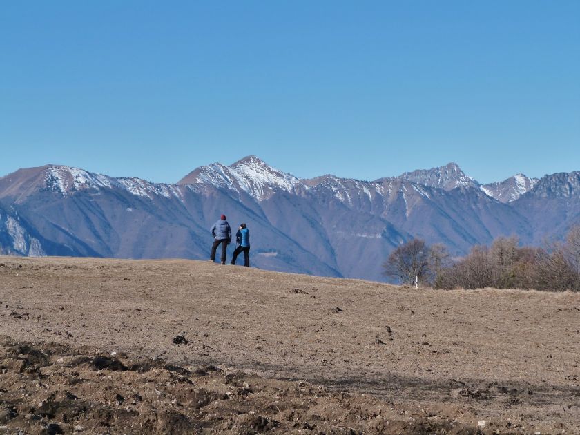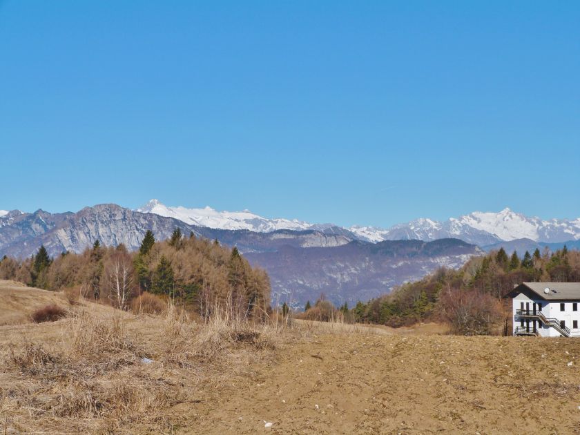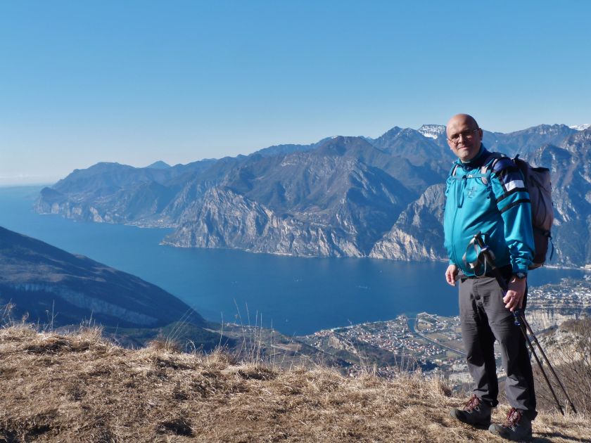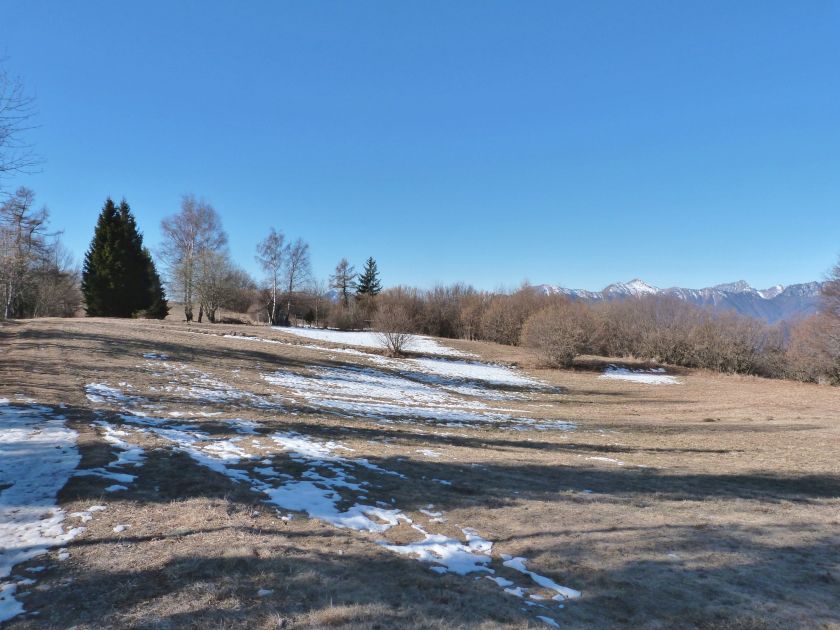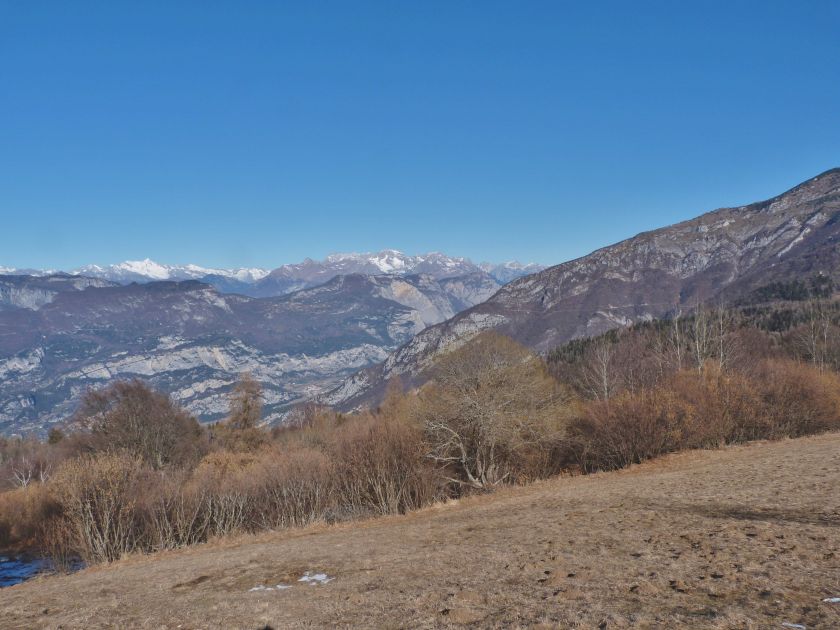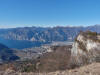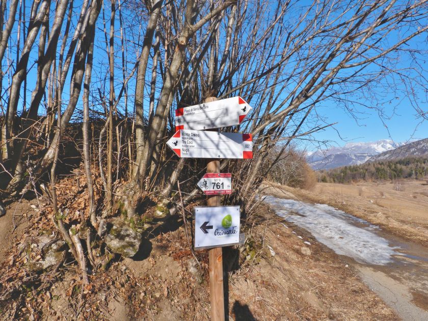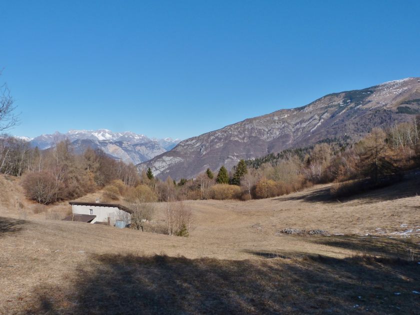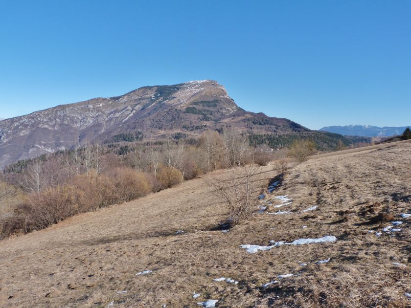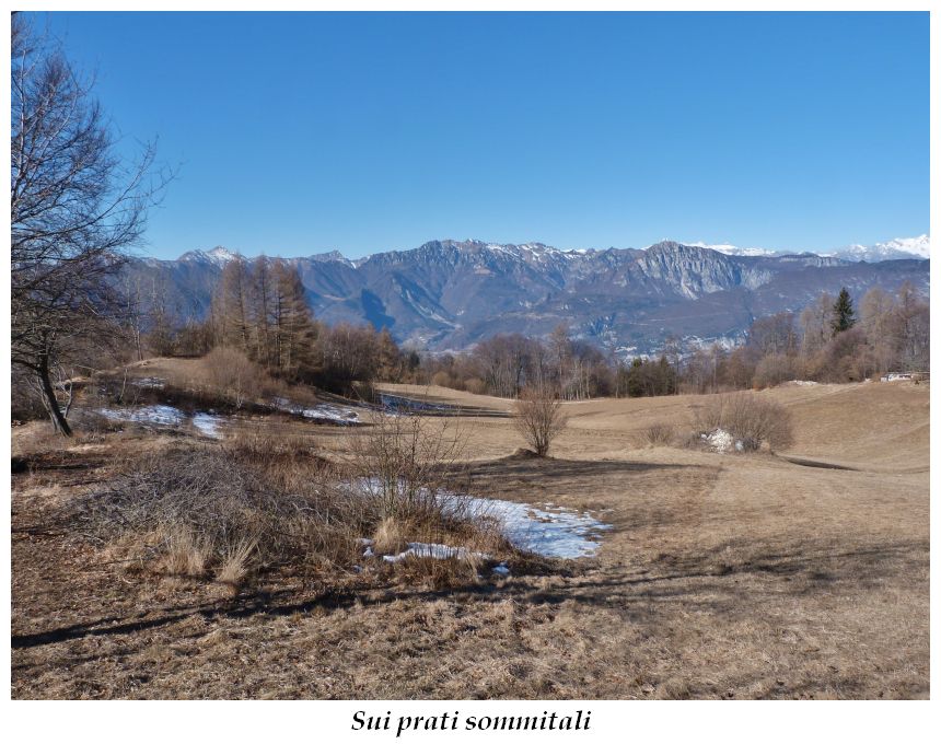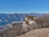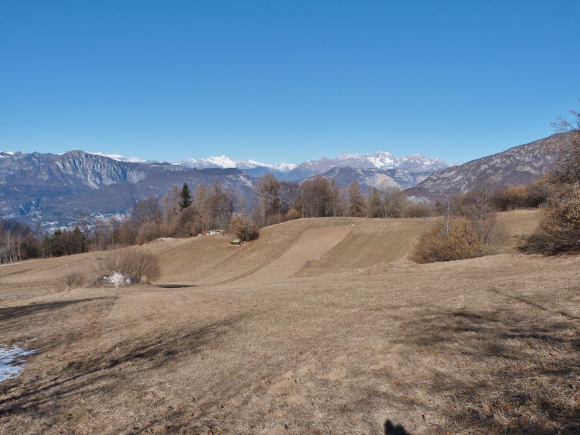Il percorso che andiamo a descrivervi è uno dei più brevi contenuti in queste pagine eppure il paesaggio che si gode, soprattutto dalla cima del Monte Creino, è uno dei più vasti e avvincenti del circondario. Nelle terse giornate con vento da nord si gode di una vista da favola su tutta la parte settentrionale del lago di Garda. L’interesse dell’escursione non è solo paesaggistico. Presso la cima si possono infatti visitare le trincee e i camminamenti austriaci della prima guerra mondiale di recente ristrutturati permettendo un tuffo nella storia. Sono luoghi sorprendentemente non troppo noti nonostante la grande facilità d’accesso. La camminata, in assenza di neve, è ben percorribile anche nella stagione invernale. É possibile non siate attratti da un percorso così breve. In questo caso potete “aggregare” la salita dei Monti Creino e Brugnolo a quella dell’imponente Monte Stivo riempiendo al meglio una giornata di cammino. L’escursione in breve: Santa Barbara (m 1169) – Monte Creino (m 1290) – Croce Monte Creino (m 1280) – Monte Brugnolo (m 1180) – Santa Barbara (m 1169) Dati tecnici: Partenza dal parcheggio presso l’Albergo Miralago (m 1905): Difficoltà: E (Vai alla scala delle difficoltà). Dislivello assoluto: m 121. Acqua potabile sul percorso: assente Accesso alla partenza: Dalla statale 240 che collega Rovereto a Torbole, in località Loppio, si volge sulla provinciale che transitando per i paesini di Pannone e Varano guadagna il capoluogo comunale di Ronzo-Chienis. Qui troviamo a sinistra l’ulteriore bivio per Arco: in breve saliamo al valico, in località Santa Barbara (m 1181) oltre il quale la strada calerebbe sul versante dell’Archese. In coincidenza del passo possiamo parcheggiare l’automobile. Descrizione del percorso: In coincidenza del Passo di Santa Barbara (m 1169) si stacca verso sud la stradina asfaltata con cartello indicante il Monte Creino ad appena mezz’ora di marcia. Muoviamo in questa direzione su comodo stradello. Dopo la prima semicurva siamo ad una biforcazione dove ignoriamo la strada che si separa sulla destra. Procediamo in debole dislivello tra vasti appezzamenti coltivati con imponente visione dominata dal vicino Monte Stivo ma estesa verso ovest sino al lontano Carè Alto. La strada prosegue eseguendo un tornante verso destra. Poco oltre siamo ad un bivio. Tralasciamo il proseguo dello stradello asfaltato volgendo verso sinistra con cartello indicante Monte Creino (segnavia 637). Su fondo ghiaioso entriamo nella boscaglia in parte a conifere. Da notare la presenza, sui lati della mulattiera, delle realizzazioni artistiche degli alunni delle scuole elementari della valle. Si tratta della rassegna a cielo aperto denominata “Creinarte”. Il tracciato prende quota in moderata pendenza eseguendo un ulteriore tornante quindi l’alberatura diviene meno densa lasciando spazio ad alcuni appezzamenti prativi. Poco oltre vi sono due possibilità per accedere alla vetta. Sulla sinistra il sentiero sfrutta la trincea di guerra austro ungarica ottimamente restaurata permettendo di raggiungere direttamente la cima del Monte Creino. Tenendo la destra si cammina invece tra gli ampi spazi erbosi con grande paesaggio alle spalle esteso in lontananza sino all’Adamello, alla Presanella e alle Dolomiti di Brenta accedendo in modo più diretto alla sommità (m 1290). Il Monte Creino si rivela un terrazzo di straordinaria ampiezza. Poche posizioni permettono una migliore visuale dell’estremità superiore del Lago di Garda con in evidenza i paesi di Riva e di Torbole. Notevole la vista sul prospiciente Monte Altissimo di Nago mentre verso ovest spiccano le Alpi di Ledro e le Prealpi Bresciane. Guardando alla nostra destra notiamo, a breve distanza, la “Croce del Monte Creino” sull’orlo della falesia che precipita verso il lago. Muoviamo in questa direzione seguendo grosso modo l’orlo della cresta sino a guadagnare in una decina di minuti la croce (m 1280). Si ripete la visione del Lago di Garda, particolarmente bella quando il vento è settentrionale determinando condizioni di grande limpidezza. L’escursione procede oltre la croce perdendo quota nel prato. Andiamo ad obliquare liberamente verso destra osservando di nuovo un eccellente scorcio verso Presanella e Dolomiti di Brenta. In breve intercettiamo uno stradello dapprima ghiaioso con cartello indicante il Monte Brugnolo. Muoviamo in questa direzione con il fondo che diviene asfaltato. In breve siamo all’ulteriore biforcazione segnalata dove volgiamo a sinistra per eseguire la digressione che conduce al Monte Brugnolo. Il tracciato resta inizialmente asfaltato articolandosi con deboli dislivelli tra prati e tratti alberati. Lasciato sulla destra un modesto casolare, il segnavia muove verso sinistra salendo nel prato verso il soprastante crinale. La vetta del Monte Brugnolo (m 1180) appare piuttosto anonima e la si raggiunge lasciando il sentiero per scostarsi a sinistra guadagnando in pochi metri l’orlo del salto rivolto verso il Lago di Garda. Da notare come il cartello indicante la cima sia stato posto leggermente a valle di quest’ultima e non sulla sommità vera e propria. Il rientro avviene ripercorrendo a ritroso lo stradello sino al bivio dove, volgendo a sinistra, si cammina sulla stradina asfaltata che riporta tra i prati al Passo di Santa Barbara (m 1189) per un totale di ore 1,45 di cammino. VISUALIZZA QUI SOTTO LA PHOTOGALLERY DEL TREKKING