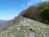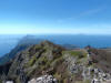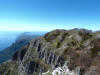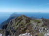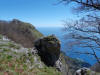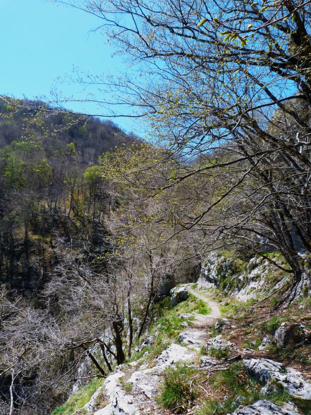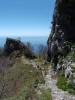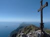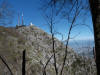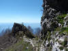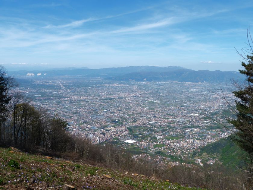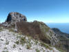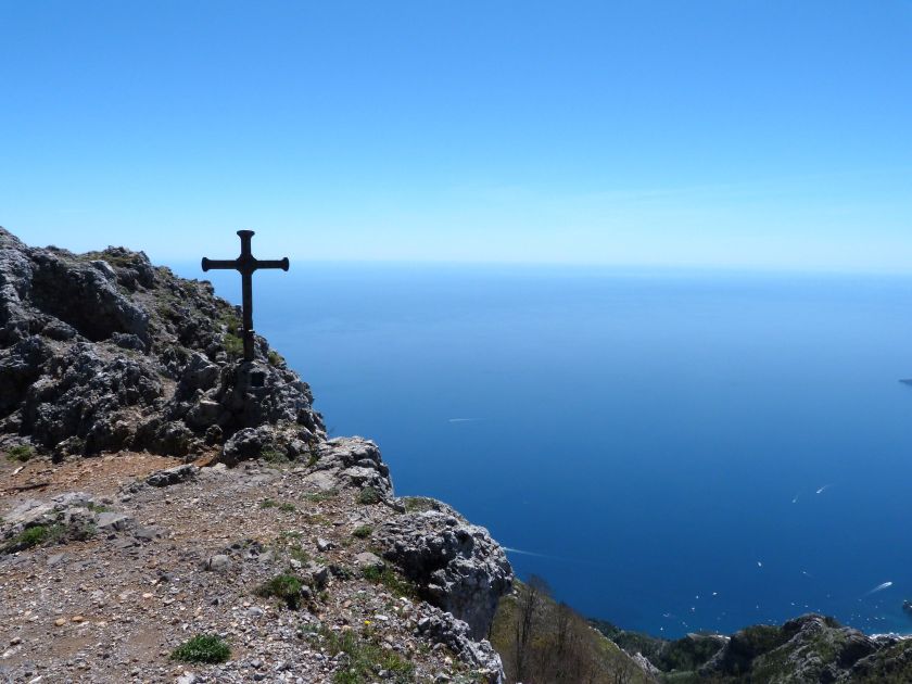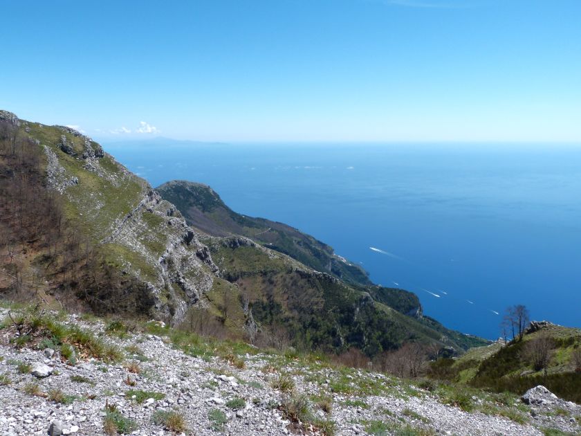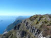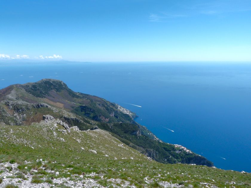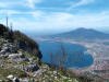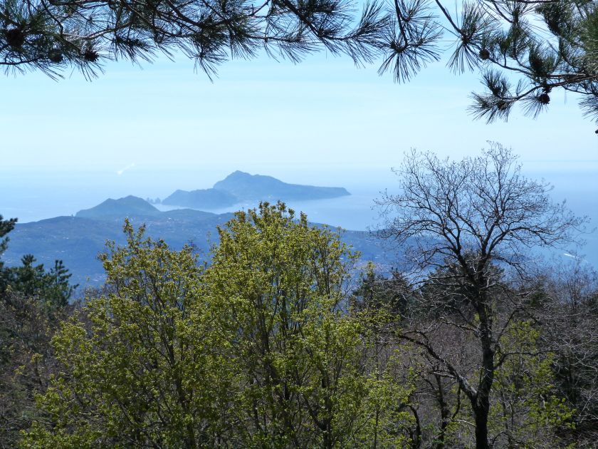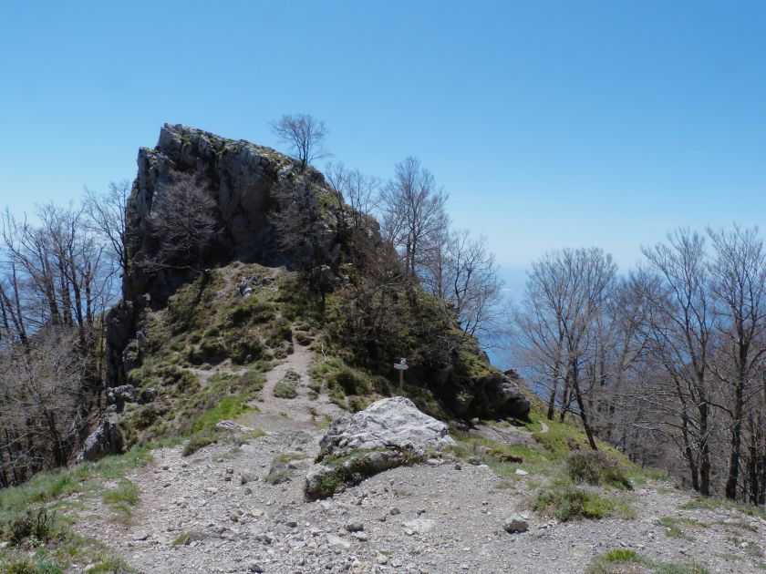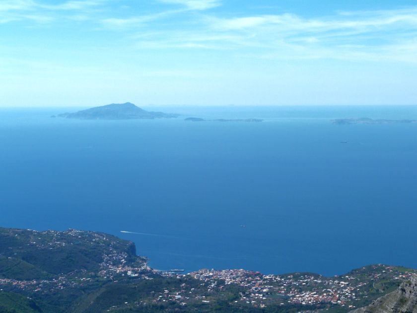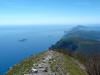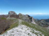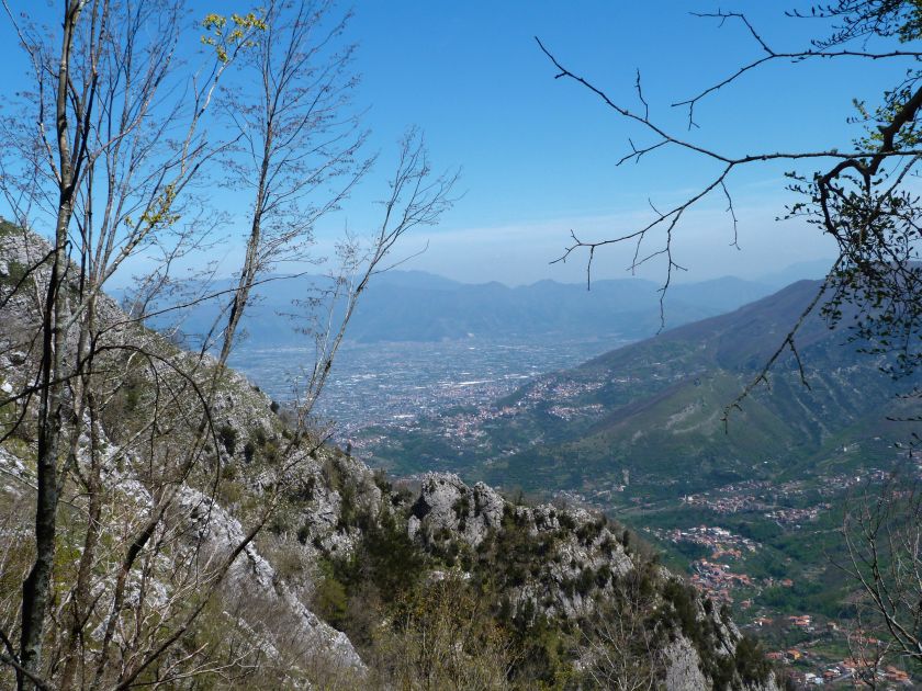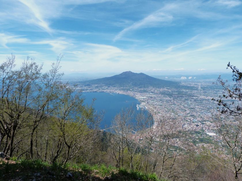 Il nostro primo itinerario escursionistico in Campania ha lasciato in noi un ricordo indelebile. Il solo citare la penisola sorrentina e la costiera amalfitana evoca, nella maggior parte delle persone, la visione di una costa a picco decantata in tutto il mondo oltre ad un ambiente mediterraneo di grande mitezza. Quante persone associeranno quest’area alla possibilità di camminare in montagna? Da un lato l’intero settore è ben noto a chi pratica il trekking per la presenza di un percorso famoso quale il Sentiero degli Dei. Abbiamo tuttavia rivolto la nostra attenzione più in alto, raggiungendo nella vetta del Molare, il vertice dei Monti Lattari ovvero la catena montuosa che caratterizza la penisola. Sarebbe superficiale considerare queste montagne come poco rilevanti. In cima al Molare si è infatti oltre i 1400 metri di quota: da lassù si gode la vista di un braccio di mare di grande ampiezza oltre ad un panorama incomparabile su Napoli, sul Vesuvio e sulle isole di Procida, Ischia e Capri. Per completezza aggiungiamo che il percorso descritto tocca anche il Monte Faito, forse la vetta della catena che gode della maggior notorietà sebbene non sia la più alta in quanto raggiungibile con la funivia che sale da Castellamare di Stabia. Il Parco Regionale dei Monti Lattari si prende cura in modo eccellente della segnaletica escursionistica che appare puntuale e ben curata. L’ambiente appare del tutto atipico per chi è abituato alle altitudini delle Alpi e dell’Appennino Centrale ma non per questo meno affascinante e ricco di spunti d’interesse. La neve può interessare il settore attraversato dal sentiero per via della quota nonostante la notevole vicinanza del litorale ragion per cui consigliamo d’eseguire la camminata in primavera o in autunno. Un particolare cenno è relativo alle nebbie che spesso si addensano sulle cime dei Lattari favorite dal contrasto tra l’umidità che sale dal Tirreno e la forzata risalita delle masse d’aria verso le cime. Per godere del favoloso panorama di vetta è più che mai necessario l’ascolto delle previsioni meteorologiche per godere di un’atmosfera limpida e stabile. L’escursione in breve: Belvedere Sant’Angelo (Piazzale dei Capi – m 1034) – Stazione a monte Funivia del Faito (m 1102) – Monte Faito (m 1131) – Porta del Faito (m 1200) – Santuario San Michele (m 1261) – Castellone (m 1233) – Sorgente Acqua Santa (m 1235) – Molare (Monte San Michele – m 1444) – Croce della Conocchia (m 1387) Dati tecnici: Partenza dal Belvedere Sant’Angelo (Piazzale dei Capi - m 1034): Difficoltà: E. Dalla partenza al Santuario di San Michele difficoltà T, quindi E con brevissimo tratto EE poco prima della vetta del Molare. (Vai alla scala delle difficoltà). Dislivello assoluto: m 410. Acqua potabile sul percorso: alla Sorgente Acqua Santa. Accesso alla partenza: Con la SS 145 Sorrentina raggiungiamo il paese di Vico Equense. In coincidenza del centro abitato troviamo il bivio per il Villaggio Monte Faito. La strada sale ripida serpeggiando sul fianco della montagna toccando alcune frazioni fra le quali ricordiamo Massaquano e Patierno. Dopo 16 km da Vico Equense si raggiunge il cosiddetto Piazzale dei Capi dove, presso una grande rotonda, possiamo lasciare l’automobile. La strada proseguirebbe volgendo bruscamente verso destra bordeggiando l’Hotel Sant’Angelo. Appena più a sinistra cala ripida Via Quisisana. Tra le due strade si osserva un’area picnic in coincidenza della quale ha inizio il sentiero che sale verso Monte Faito. Descrizione del percorso: La traccia si innalza lasciando l’Hotel Sant’Angelo e la strada più in basso sulla destra. Seguiamo l’ampio costone discendente dal Monte Faito. Nonostante la camminata sia solo all’inizio godiamo già, alle spalle, di un paesaggio grandioso che si apre permettendo l’osservazione di un ampio tratto di mare con in vista l’Isola di Capri. Proseguiamo con una ripida ma bella scalinata che permette di guadagnare rapidamente quota. Il tracciato si sviluppa sul bordo del crinaletto offrendo una vista che si estende grandiosa in direzione di Napoli con il Vesuvio, nonché verso le isole di Procida e d’Ischia. A 25 minuti dalla partenza guadagniamo il pianetto che ospita la stazione a monte della funivia di Monte Faito (m 1102). Naturalmente è possibile iniziare qui l’escursione usando l’impianto a fune che ha la sua stazione a valle in coincidenza di Castellamare di Stabia. Abbiamo tuttavia preferito la soluzione che vi stiamo proponendo per non dipendere dagli orari dell’impianto. Da notare inoltre l’ulteriore possibilità di salire fin qui in automobile eliminando anche in questo caso il primo tratto di salita. Ancora una volta la scelta è libera; con la soluzione descritta abbiamo cercato tuttavia di includere la parte iniziale per non provarsi delle grandiose vedute prima indicate. Si tratta inoltre di un’escursione nel complesso non troppo lunga e non avrebbe molto senso abbreviarla ulteriormente a meno che non si abbia pochissimo tempo a disposizione. Proseguiamo con la nostra narrazione ignorando la strada aperta al traffico che permette l’accesso alla stazione a monte della funivia e che scende sulla destra. Manteniamo l’ampio e comodo crinale con cartelli indicanti “San Michele”. Il tracciato si sviluppa tra frazioni prative e altri settori caratterizzati da una fitta faggeta. Andiamo a lambire la vetta del Monte Faito (m 1131) deturpato in vetta da parecchi ripetitori radio. Nel proseguo manteniamo l’ampia mulattiera che, dopo aver bordeggiato sulla destra alcune proprietà, procede grosso modo lungo il filo di cresta. Si apre a tratti la vista a sinistra osservando ancora una volta il Vesuvio e la grande piana ai suoi piedi, una delle aree più densamente abitate della nostra penisola. Infine la mulattiera, in vista della Chiesa di San Michele, intercetta l’ultimo tornante della strada asfaltata aperta al traffico che 