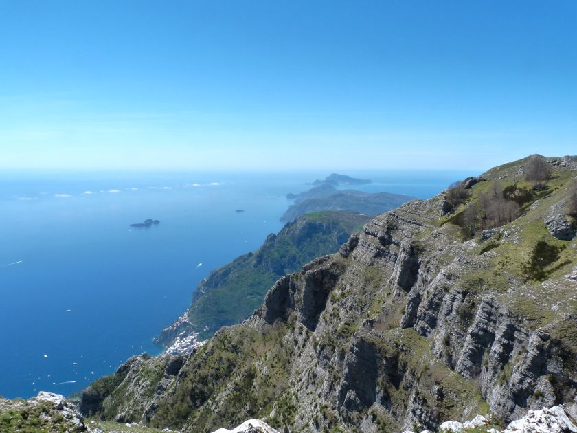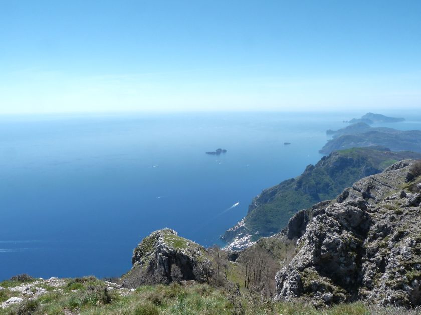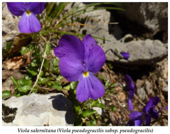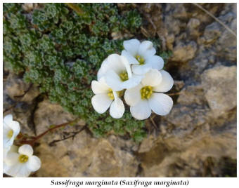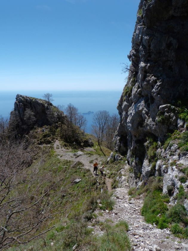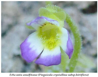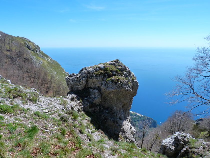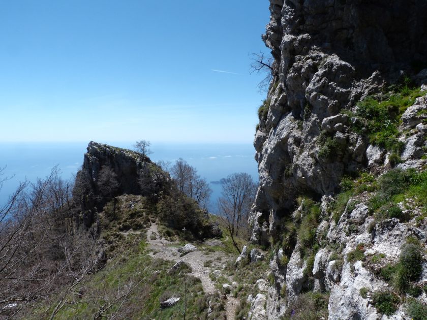 Abbiamo eseguito questa escursione alla fine del mese di aprile riscontrando la presenza di parecchie fioriture a rendere ancora più piacevole il cammino. Un cenno particolare lo merita sembra ombra di dubbio la rara Sassifraga marginata (Saxifraga marginata). In Italia è una specie presente su poche catene montuose in Abruzzo, Molise, Campania, Basilicata e Calabria. Le stazioni poste sui Monti Lattari sono tra le più comode da raggiungere. Lungo il percorso descritto è presente con particolare abbondanza soprattutto nella frazione sommitale del Molare e della Croce di Conocchia prediligendo le roccette calcaree affioranti. La fioritura appare nel pieno della sua bellezza proprio a cavallo tra aprile e maggio. Altra specie di grande rarità è senz’altro l’Erba unta amalfitana (Pinguicula crystallina subsp. hirtiflora) presente soltanto in Campania e in Calabria. Come tutte le piante del genere Pinguicula si tratta di una pianta carnivora; le sue foglie appiccicose sono una trappola per gli insetti più piccoli; la pianta produce poi enzimi atti a digerire le prede. Le corolle della specie in questione caratterizzano le rocce stillicidiose in coincidenza della Sorgente Acqua Santa. Inutile sottolineare l’importanza, vista la rarità della specie, di non rimuovere in alcun modo i fiori o le piante dal loro habitat. I Monti Lattari ospitano inoltre un importante endemismo. Si tratta della Viola salernitana (Viola pseudogracilis subsp. pseudogracilis) segnalata in Italia solo in Lazio, Molise e Campania e presente lungo il percorso descritto con notevole abbondanza. Tra le altre specie osservate ricordiamo Sassifraga alpina (Saxifraga paniculata), Sassifraga a foglie rotonde (Saxifraga rotundifolia), Orchide gialla (Orchis pauciflora) osservata sui prati sommitali presso la Croce di Conocchia, Arabetta alpina (Arabis alpina), Dafne laurella (Daphne laureola), Anemone dell’Appennino (Anemone apennina) e Asfodelo ramoso (Asphodelus ramosus) presente sulle pendici sommitali del Monte Faito.