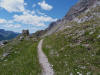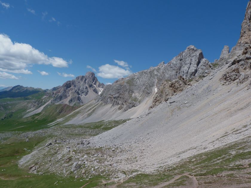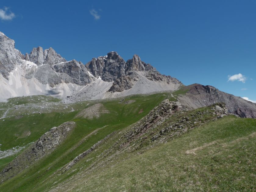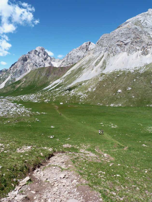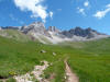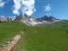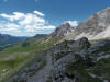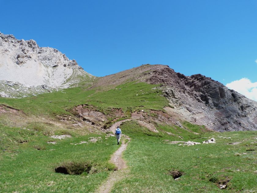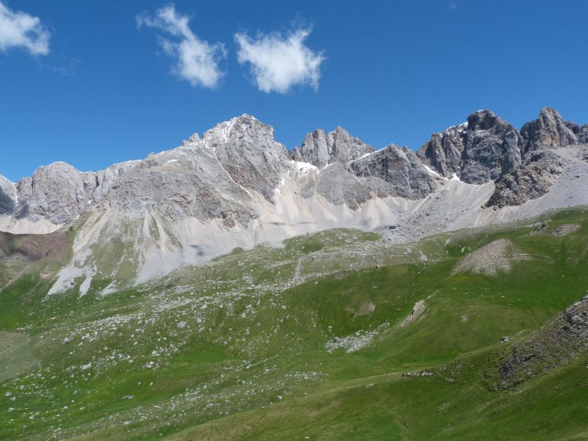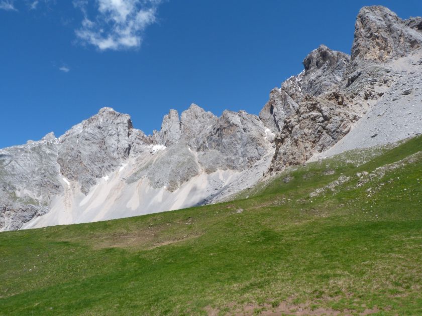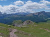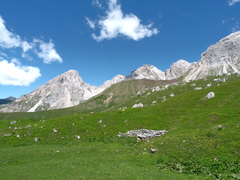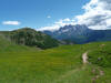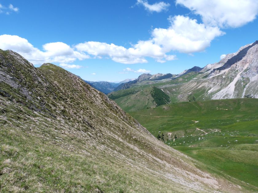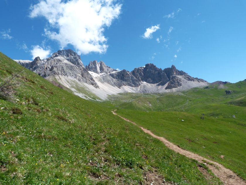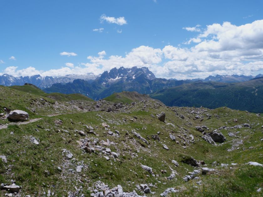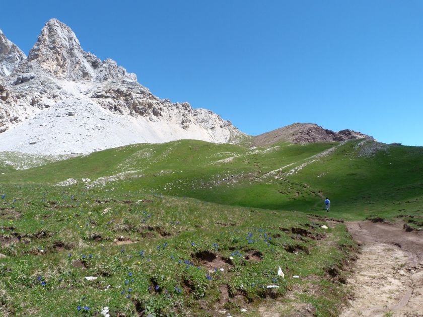 Ci sentiamo di indicarvi questa escursione come una delle più belle delle intere Dolomiti. La prima parte del percorso ricalca uno dei sentieri che gode nell’area di maggiore notorietà. La forestale che conduce al Rifugio Fuciade è sempre percorsa, estate e inverno, dai tanti turisti che affollano l’area del Passo di San Pellegrino. Il tracciato, ampio e quasi senza dislivello, dopo una prima parte prevalentemente boschiva raggiunge i bellissimi prati che caratterizzano la zona del Rifugio. Nei giorni tersi l’ambiente è paradisiaco e avrete la sensazione di trovarvi in qualche pascolo del Canada o della Scandinavia. Il rifugio è la meta di gran parte dei frequentatori della zona di conseguenza, nel proseguo, la presenza umana diviene meno forte e anzi, nella deviazione al Pizzo Forca vi sembrerà di essere in un altro luogo rispetto alla partenza. L’assenza di una traccia e di qualsiasi tipo di segnaletica rende la cima del tutto dimenticata e anche in piena estate non è raro trovarsi in completa solitudine. Nonostante il relativo isolamento la sommità resta alla portata, con tempo buono, di un escursionista di media esperienza in grado di destreggiarsi su terreno libero ma comunque senza salti rocciosi esposti. A completamento dell’avventura si riprende il sentiero segnato per guadagnare il valico della Forca Rossa godendo di nuovi splendidi scorci sui gruppi dolomitici circostanti. Nella stessa escursione potrete scorgere Civetta, Pelmo e Pale di San Martino solo per indicare i massicci più rilevanti. Quando eseguire questa camminata? Il tracciato è naturalmente accessibile per tutto il periodo compreso tra giugno e ottobre senza correre il rischio di incontrare tratti ghiacciati o innevati. La seconda metà di giugno è tuttavia il periodo più bello. La natura si risveglia dopo il lungo inverno alpino e il tracciato si riempie delle sfumature di migliaia di fiori a contrastare con la neve ancora presente sulle cime circostanti. In una giornata tersa si tratta di un’esperienza indimenticabile che ci sentiamo di raccomandare vivamente. L’escursione in breve: Parcheggio presso Albergo Miralago (m 1905) – Lago delle Pozze - Val dai Bè (m 1901) – Costa da Ciasaea (m 1910) – Pecol (m 1925) – Sbrinz (m 1970) – Rifugio Fuciade (m 1982) – innesto sentiero n° 670 (m 1974) – Anter le Aive (m 2088) – sentiero n° 694 – Pizzo Forca (m 2285) – Forca Rossa (m 2493) – sentiero n° 693 – innesto sentiero n° 670 (m 2346) – Rifugio Fuciade (m 1982) – a ritroso sino alla partenza. Dati tecnici: Partenza dal parcheggio presso l’Albergo Miralago (m 1905): Difficoltà: EE (Vai alla scala delle difficoltà). Sino al Rifugio Fuciade T, quindi E nella frazione successiva tranne nella deviazione dal sentiero 694 per raggiungere il Pizzo Forca dove la difficoltà diviene EE. Segnaletica: totale tranne nella deviazione dal sentiero 694 per raggiungere il Pizzo Forca dove non si incontra nessun tipo di segnaletica. Dislivello assoluto: m 598. Acqua potabile sul percorso: alla partenza e al Rifugio Fuciade. Durante il percorso si incontrano alcuni torrenti non sempre accessibili. Accesso alla partenza: Dal paese di Moena si segue la SS 346 raggiungendo il Passo di San Pellegrino. Procediamo oltre il valico per circa 200 metri trovando sulla sinistra, immediatamente dopo il ponticello in legno delle piste di sci, il bivio con cartello indicante “Lach de le Poze – Fuciada” nonché un pannello in legno che segnala l’Albergo Miralago. Abbandoniamo la statale per procedere in questa direzione. Il tratto transitabile in automobile è solo di poche centinaia di metri sino ad accedere al parcheggio posto presso l’Albergo Miralago dove possiamo lasciare l’automobile (m 1905). Subito prima della struttura si separa sulla destra la forestale a fondo naturale dove ha inizio il nostro cammino con indicazioni per il Rifugio Fuciade. Consigliamo in ogni caso la breve digressione all’Albergo Miralago per ammirare, presso la struttura, il piccolo ma pittoresco Lago delle Pozze. Chi proviene da Cencenighe Agordino raggiunge dapprima Falcade quindi si sale verso il Passo di San Pellegrino trovando la deviazione con cartello indicante “Lach de le Poze – Fuciada” sulla destra 200 metri prima dal valico. Il proesguo ricalca quanto detto sopra Descrizione del percorso: Il tratto compreso tra la partenza e il Rifugio Fuciade è uno dei sentieri più semplici e al tempo stesso spettacolari dell’intero circondario. Nel pieno della stagione estiva si rivela una processione continua di turisti attratti dalla straordinaria bellezza del circondario unitamente ad un percorso comodo e e adatto anche a vecchi e bambini. L’itinerario presenta inizialmente dislivelli davvero minimi. Si procede quasi in piano ignorando, in località Val dai Bè (m 1901) il bivio a destra per Malga Boer. Manteniamo l’ampia carrareccia a fondo naturale che si articola tra prati e boschi di conifere raggiungendo una bella schiarita subito oltre la località Costa de Ciasaea (m 1910). Una bella panchina in legno invita alla sosta permettendo un magnifico scorcio a distanza sulle vette delle Pale di San Martino. Si prosegue superando la località Pecol (m 1925) affrontando una breve frazione in modesta salita restando nel bosco di conifere. Poco oltre si dirada l’alberatura raggiungendo il bellissimo piano prativo dominato sullo sfondo dalla Catena della Cima dell’Uomo. Il paesaggio è bucolico: nel verde di prati si incontrano ad intervalli regolari alcuni fienili in legno muti testimoni di un’epoca in cui i contadini vivevano e lavoravano in questi magnifici prati. Le strutture sono state recuperate risultando splendidamente inserite in un idilliaco paesaggio che infonde profonda calma e serenità. Da rilevare la spettacolare vista, verso meridione, delle Pale di San Martino e dell’omonimo altopiano. Procediamo tra le morbide ondulazioni prative in pratica senza dislivelli; da ril