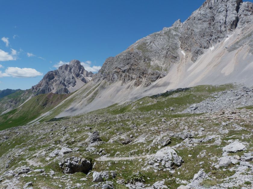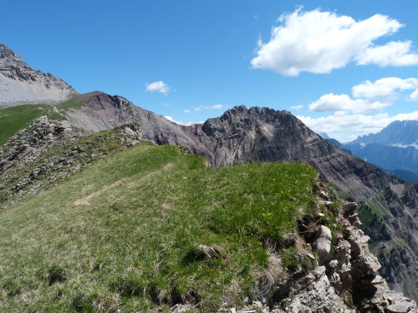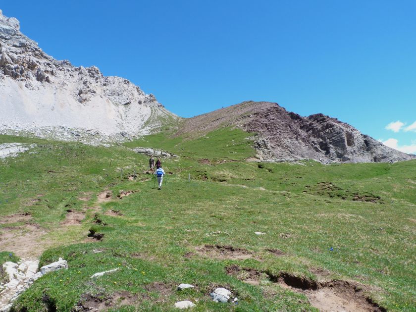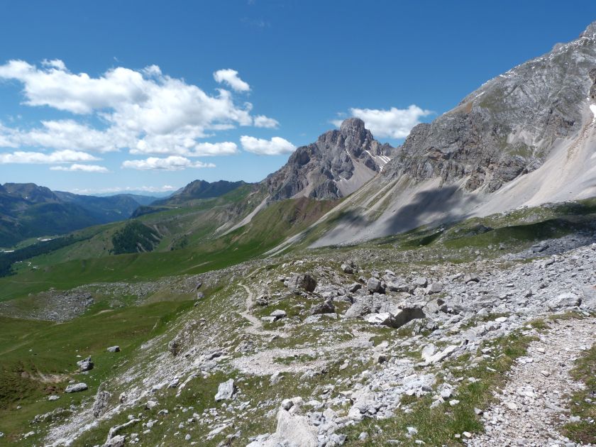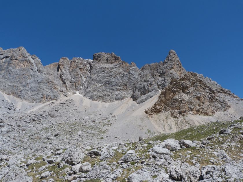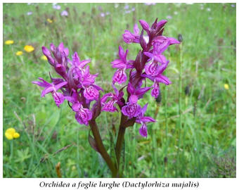 La concentrazione di specie botaniche osservabili lungo questo itinerario è notevolissima: abbiamo cercato di stilare una lista che indichi le più rilevanti ma se avessimo deciso di annotarle tutte avremmo dovuto indicarne troppe. Ci limitiamo alle principali specie cercando di dare particolare risalto alle più rare e agli endemismi. Consigliamo per osservare il massimo numero possibile di specie d’eseguire il percorso alla fine di giugno o ad inizio luglio, quanto meno in un anno di normale nevosità. A seguire la lista delle principali entità osservate. Entità endemiche: 1) Androsace emisferica (Androsace helvetica). Endemica delle Alpi, è una delle piante più belle e preziose osservabili lungo questo itinerario. Il portamento pulvinante, la sua spettacolare fioritura e l’habitat particolarmente selettivo rendono questa pianta di estrema spettacolarità. Sono presenti alcuni pulvini nei grandi massi lungo i sentieri 670, 693 e 694. 2) Sassifraga delle Dolomiti (Saxifraga squarrosa); endemica delle Alpi sud orientali appare molto simile, nell’aspetto, a Saxifraga caesia. La distinzione tra le due specie non è affatto semplice e non è d’aiuto l’osservazione dei fiori che in pratica sono quasi identici. Un elemento distintivo risiede nelle foglie, incurvate solo all’apice in S. squarrosa, curve ed aperte su tutta la lunghezza in S. caesia. 3) Genziana del Tricorno (Gentiana terglouensis). Endemica delle Dolomiti, delle Caravanche e degli Alti Tauri, presenta infiorescenza di colore blu molto simile a quella della comune Genzianella. Il riconoscimento avviene osservando le caratteristiche foglie basali che sono raccolte in 3 – 4 coppie sovrapposte su ciascun lato. È osservabile ad esempio subito a valle della Forca Rossa. 4) Ranuncolo ibrido (Ranunculus hybridus). Endemismo delle Alpi Orientali con areale esteso dalla Lombardia al Friuli. 5) Primula nana (Primula minima); magnifico endemismo delle Alpi Orientali dai petali rosati. È osservabile presso la vetta del Pizzo Forca. Altre specie: 1) Pinguicola alpina (Pinguicula alpina). Una delle poche piante carnivore presenti in Italia; le sue foglie appiccicose sono una trappola per gli insetti più piccoli; la pianta produce poi enzimi atti a digerire le prede. 2) Erba unta comune (Pinguicula vulgaris). Altra pianta carnivora che cattura insetti al pari della precedente. 3) Azalea alpina (Loiseleuria procumbens); caratterizzata da intricati e compatti pulvini trapuntati da numerosi, piccoli fiori rosa. 4) Orchidea a foglie larghe (Dactylorhiza majalis). Robusta ed appariscente orchidea tipica delle zone umide e dei bordi dei ruscelli, nel complesso infrequente. Una bella stazione è osservabile nella zona umida che precede l’arrivo al Rifugio Fuciade. 5) Aglio serpentino (Allium victorialis); sebbene non si tratti di un endemismo è una specie nel complesso piuttosto rara e con areale centrato in prevalenza sulle Alpi Orientali. Lungo il percorso descritto è presente una bella stazione tra il Rifugio Fuciade e Anter le Aive nei prati attraversati dal sentiero 670. Abbiamo trovato altri esemplari isolati nei prati presso la località Sbrinz. 6) Carice bicolore (Carex bicolor); nel complesso rara ne abbiamo trovato qualche esemplare posso sotto la Forca Rossa. 7) Sassifraga alpina (Saxifraga paniculata) 8) Sassifraga muschiata (Saxifraga moschata) 9) Sassifraga incrostata (Saxifraga crustata) al Pizzo Forca. 10) Acino alpino (Acinos alpinus) 11) Erba cipollina (Allium schoenoprasum) nei dintorni del Rifugio Fuciade. 12) Anemone del Monte Baldo (Anemone baldensis). 13) Arabetta alpina (Arabis alpina) 14) Arnica (Arnica montana) 15) Bartsia alpina (Bartsia alpina) 16) Campanula barbata (Campanula barbata) 17) Crepide dorata (Crepis aurea) presso la partenza. 18) Camedrio alpino (Dryas octopetala) 19) Genziana di Koch (Gentiana acaulis) 20) Cariofillata montana (Geum montanum) al Pizzo Forca. 21) Cariofillata dei rivi (Geum rivale) 22) Orchidea odorosa (Gymnadenia odoratissima) 23) Orchidea delle zanzare (Gymnadenia conopsea) 24) Viola gialla (Viola biflora) 25) Clematide alpina (Clematis alpina) in Val Fredda subito a monte della partenza. 26) Vedovella celeste (Globularia cordifolia) presso la partenza. 27) Tajola comune (Tofieldia calyculata) 28) Botton d’oro (Trollius europaeus) 29) Pigamo colombino (Thalictrum aquilegifolium) 30) Soldanella alpina (Soldanella alpina) 31) Soldanella del calcare (Soldanella minima), da non confondersi con la precedente dalla quale si distingue per le minori dimensioni, la colorazione bianca della corolla e lo stilo non sporgente. 32) Silene a cuscinetto (Silene acaulis) 33) Valeriana montana (Valeriana montana) 34) Salice reticolato (Salix reticulata) 35) Ormino dei Pirenei (Horminum pyrenaicum) tra il Rifugio Fuciade e il Rifugio Flora Alpina. 36) Pedicolare spiralata (Pedicularis gyroflexa), subendemica delle Alpi con rare stazioni sui Pirenei. 37) Pedicolare a foglie verticillate (Pedicularis verticillata) 38) Primula farinosa (Primula farinosa) nelle zone umide comprese tra la partenza e il Rifugio Fuciade. 39) Sulla alpina (Hedysarum hedysaroides) presso il Rifugio Fuciade. 40) Piede di gatto (Antennaria dioica) 41) Dafne rosea (Daphne striata) 42) Pepe di monte (Daphne mezereum) 43) Giglio martagone (Lilium martagon) 44) Minuartia sedoide (Minuartia sedoides) 45) Biscutella montanina (Biscutella leavigata) 46) Poligono viviparo (Polygonum viviparum) 47) Tossillaggine alpina (Homogyne alpina) 48) Platantera comune (Platanthera bifolia) 49) Orchide candida (Pseudorchis albida) 50) Celoglosso (Coeloglossum viride) 51) Geranio selvatico (Geranium sylvaticum) 52) Raponzolo plumbeo (Phyteuma ovatum) tra il Rifugio Fuciade e Anter le Aive. 53) Gipsofila strisciante (Gypsophila repens) subito prima del Rifugio Fuciade. 54) Veratro comune (Veratrum album) 55) Orchide dei pascoli (Traunsteinera globosa) 56) Sassifraga rossa (Saxifraga oppositifolia) 57) Nigritella comune (Nigritella 