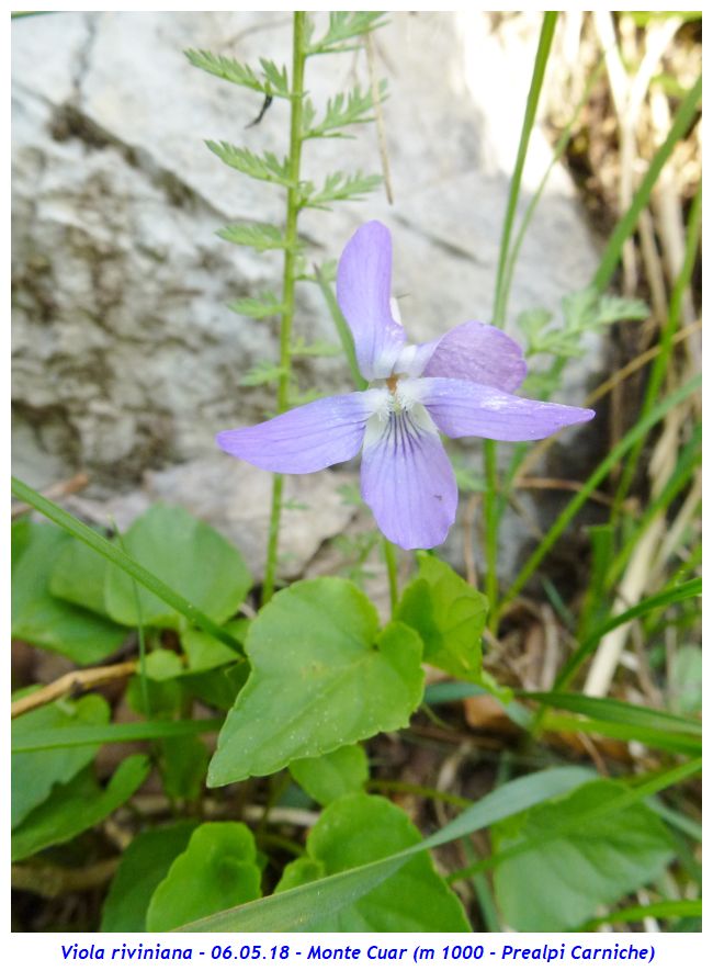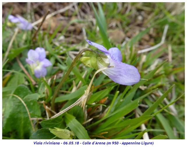 Nome scientifico: Viola riviniana Rchb. (Sinonimi: Viola sylvestris auct. non Lam. – Viola sylvestris Lam. var. rinviniana Koch – Viola silvatica Fr. subsp. rinviniana Asch.) Famiglia: Violaceae Altro nome comune: Scleranto perenne Habitat naturale: Boschi di latifoglie (faggio, quercia ecc…) su terreni freschi e argillosi da 0 a 2100 metri. Presente in tutte le regioni d’Italia tranne in Molise. Periodo di fioritura: Da aprile ad agosto Descrizione della pianta: Pianta erbacea perenne alta 5 – 20 cm con breve rizoma e senza stoloni. I fusti fioriferi sono fogliosi, prostrato-ascendenti e nascono all’ascella delle foglie basali. Le foglie presentano lamina cuoriforme glabra lunga 2 – 4 cm, quasi larga quanto lunga con margine crenulato e sono portate da lunghi peduncoli; le inferiori sono ottuse mentre le superiori sono più o meno acuminate. Sono presenti stipole lanceolate e acuminate con brevi fimbrie. I fiori, lunghi 15 – 25 mm, sono solitari, inodori e sostenuti da lunghi peduncoli con 2 bratteole acuminato-lineari nella parte superiore. Il calice presenta 5 sepali acuminati lunghi 7 – 13 mm e larghi 2 – 2,5 mm muniti di appendici basali di 2 – 3 mm che crescono in fase di fruttificazione fino a raggiungere 3,7 mm. La corolla presenta diametro fino a 2,5 cm ed è formata da 5 larghi petali di colore azzurro chiaro con fauce caratterizzata da una macchia biancastra con venature scure. È presente un grosso sperone ottuso lungo 3 – 5 mm più o meno ricurvo, bilobo e scanalato all’apice in genere più chiaro dei petali essendo biancastro o azzurro pallido, spesso maculato. Gli stami sono 5. Note: L’impollinazione della specie è entomogama mentre la disseminazione avviene ad opera delle formiche. Il nome specifico della specie ricorda il botanico tedesco di Lipsia A.-Q. Bachmann detto Rivinius (1652 – 1723). È possibile la confusione con Viola reichenbachiana Jord. ex Boreau con cui condivide l’habitat. Quest’ultima differisce per lo sperone più dritto e sottile, in prevalenza concolore ai petali che appaiono più stretti e violacei; le appendici dei sepali sono nettamente più brevi mentre le stipole sono strettamente lanceolate. Le foglie sono normalmente più lunghe che larghe; più lunga è anche la capsula. Dove l’abbiamo osservata: Le prime 3 fotografie sono state realizzate alle pendici del Monte Cuar (m 1000 – Prealpi Carniche); tutte le altre fotografie sono state realizzate presso il Colle d’Arena (m 950 – Appennino Ligure). ![]()