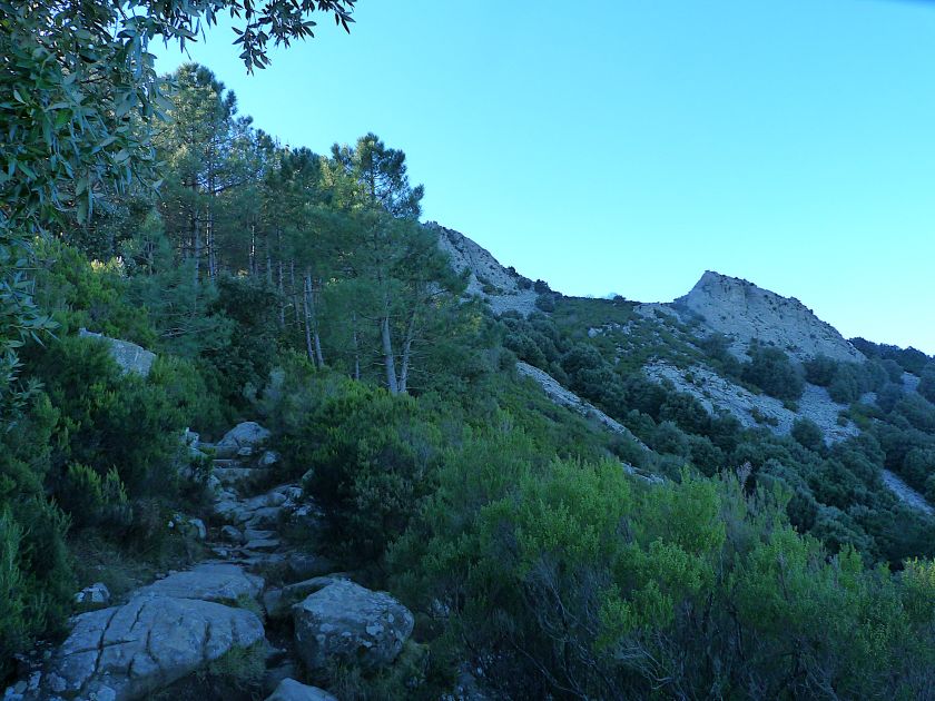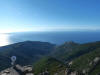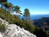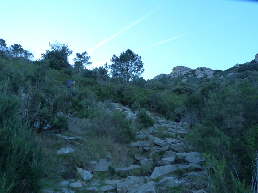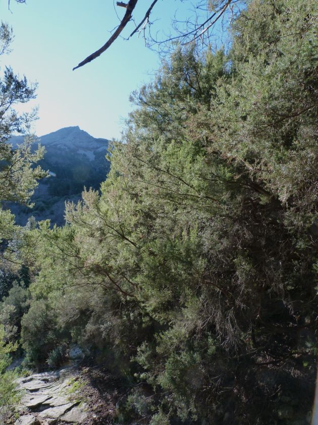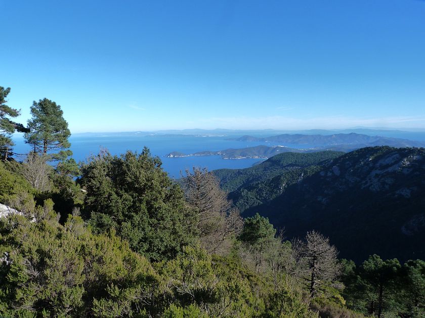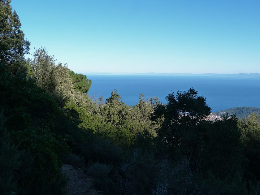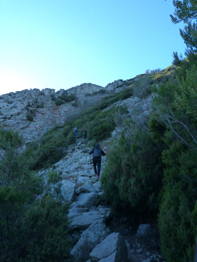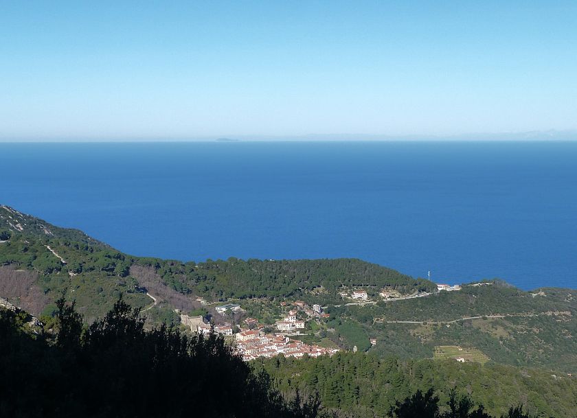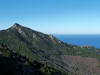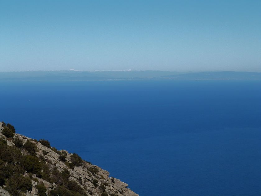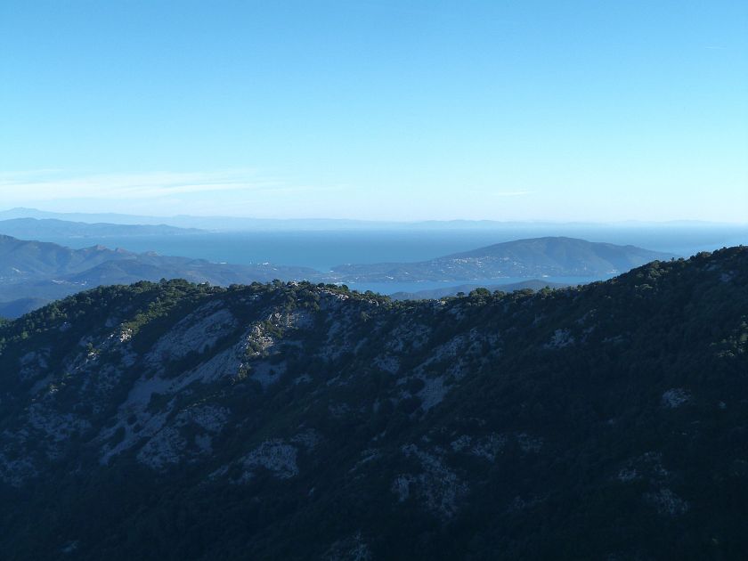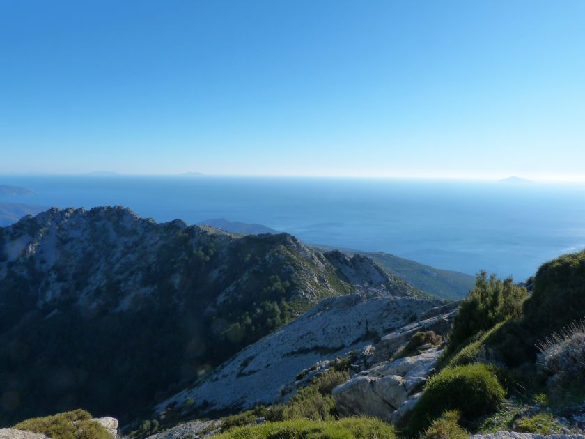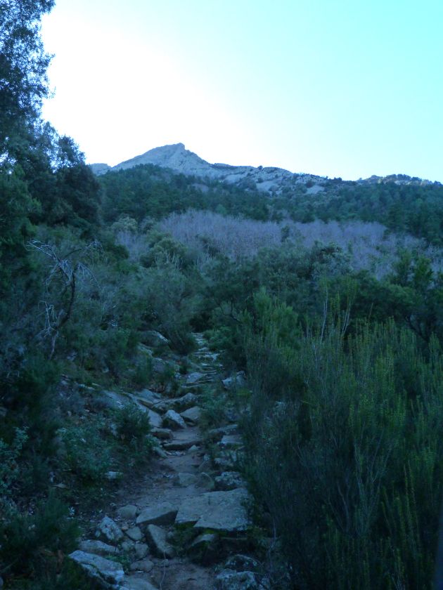 Tra gli itinerari escursionistici più spettacolari nell’ambito dell’Isola d’Elba non può certo mancare la salita al Monte Capanne. Posto nel lato occidentale dell’isola è il tetto non solo dell’intero Arcipelago Toscano ma anche, curiosamente, dell’intera provincia di Livorno che non offre nemmeno nella sua fascia continentale un’elevazione più alta. Il panorama di vetta non è semplicemente “bello”; stiamo parlando piuttosto di qualcosa che desta profonda sensazione per l’incredibile ampiezza della vista. In una giornata tersa dalla cima del Capanne si osservano le isole di Gorgona, Capraia, Pianosa, Montecristo e Giglio oltre alle grandi vette della Corsica. Verso nord l’orizzonte è occupato dal crinale appenninico tosco emiliano mentre a sud scorgiamo il promontorio dell’Argentario. È un qualcosa di indimenticabile così come particolare è la frazione sommitale del sentiero. Grandi massi di granito rendono l’ambiente tutt’altro che mediterraneo. Le pendenze e il fondo roccioso attribuiscono all’ascesa un sapore decisamente alpestre che nulla ha a che fare con i sentieri nella macchia che caratterizzano le quote inferiori dell’Isola d’Elba. In inverno la neve ricopre talvolta il settore sommitale rendendo l’ascesa assai impegnativa. Nel nostro caso siamo saliti in vetta nel mese di dicembre approfittando tuttavia di una fase secca. Nonostante ciò era presente presso la cima parecchia brina creando un particolarissimo contrasto con la grande mitezza della costa sottostante. Da rilevare la presenza della cabinovia che conduce in circa 18 minuti poco sotto il punto più alto. L’impianto è aperto normalmente nel periodo compreso tra aprile e ottobre. Qualcuno potrebbe prendere in considerazione l’ipotesi di salire con l’impianto per raggiungere in una decina di minuti la vetta e discendere a valle con il sentiero. Ci sentiamo tuttavia di sconsigliare questa ipotesi per via della segnaletica pressoché inesistente in alcune buie frazioni boschive. Conviene affrontare la faticosa salita memorizzando negli ombrosi tratti nella vegetazione alcuni riferimenti che permetteranno in discesa di non faticare troppo nel ritrovare la via. Nella speranza il sentiero venga al più presto segnato di fresco la salita resta un’impresa atipica di grande suggestione da eseguirsi nelle mezze stagioni o, con molta cautela, in inverno. Meno consigliabile è la stagione estiva nonostante gran parte dell’ascesa si sviluppi all’ombra del bosco in quanto umidità e foschia spesso riducono sensibilmente la visibilità. Occorre ricordare come tutta l’escursione si sviluppi nell’ambito del Parco Nazionale dell’Arcipelago Toscano; siamo pertanto in un’area protetta per le sue peculiarità faunistiche e botaniche ed è scontato ricordare l’importanza di accostarsi in questo ambiente con discrezione evitando in tutti i modi di lasciare traccia del nostro passaggio. L’escursione in breve: Marciana (m 360) – Romitorio di San Cerbone (m 529) – incrocio nel bosco con GTE Nord (m 645) – terzo incrocio con GTE (m 762) – stazione a monte della seggiovia (località Torretta – m 963) – Monte Capanne (m 1019) Partenza da Marciana (m 360): Difficoltà: EE sebbene in assenza di passaggi impegnativi per via della segnaletica a tratti poco evidente (Vai alla scala delle difficoltà). Segnaletica: tutti i bivi sono segnalati con cartelli tuttavia la segnaletica appare nel complesso scarsa e poco evidente (dicembre 2024). Dislivello assoluto: m 659. Acqua sul percorso: assente Accesso: Da Portoferraio si segue la SP 24 sino a Procchio quindi si procede sulla SP 25 raggiungendo Marciana Marina. La strada procede abbandonando il paese per inoltrarsi in ripida salita nella parte interna dell’isola. Tocchiamo la frazione di Poggio e in breve siamo a Marciana dove possiamo parcheggiare l’automobile. L’escursione ha inizio presso il punto in cui, sulla sinistra, si separa dalla provinciale Via Cà de Santi proprio in coincidenza della bella piazzetta dove troviamo la farmacia del paese. Un cartello escursionistico indicante il Romitorio di San Cerbone ad un’ora di marcia e il Monte Capanne a ore 2.45 elimina ogni dubbio sulla direzione da seguire (m 360). Descrizione del percorso: L’escursione alla cima più alta dell’Isola d’Elba segue integralmente il segnavia 101. Inizialmente il percorso serpeggia tra i vicoletti chiusi al traffico dell’abitato di Marciana. In coincidenza della Piazza Vittorio Emanuele II° invece di procedere risalendo la scalinata si volge a sinistra trovando il segnavia con indicata la deviazione proprio sul muro presso l’angolo della casa. In generale la segnaletica è fin troppo essenziale e così sarà fino in cima; sarebbe senz’altro raccomandabile l’aggiunta di qualche segnavia in più. Nel proseguo siamo tra le ultime case dell’abitato. Intercettiamo il vertice di Via della Rena ignorandone il tratto asfaltato che cala a sinistra. Restiamo sul tratto cementato che sale a destra e che lascia spazio, subito oltre, al sentiero vero e proprio. Il tracciato si inoltra nella boscaglia con pendenze inizialmente molto contenute. Tra l’alberatura abbiamo qualche scorcio verso la cima del Monte Capanne. La montagna appare spesso in ombra al mattino specialmente salendo nella stagione fredda quando il sole è particolarmente basso. La salita si articola in effetti nel versante settentrionale della montagna in ambiente non a caso umido e boscoso. Il tracciato si sviluppa per lunghi tratti pressoché in piano superando un primo solco con l’ausilio di un ponticello in legno. Poco oltre incontriamo un torrente che scavalchiamo senza troppe difficoltà cercando gli appoggi migliori tra i massi. Procediamo lungamente con il sentiero che comincia a risalire il pendio e con rari scorci tra le frasche in direzione del Capo d’Enfola. In inverno l’abbondante fogliame caduto copre i massi rendendo la marcia a tratti un po’