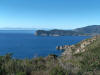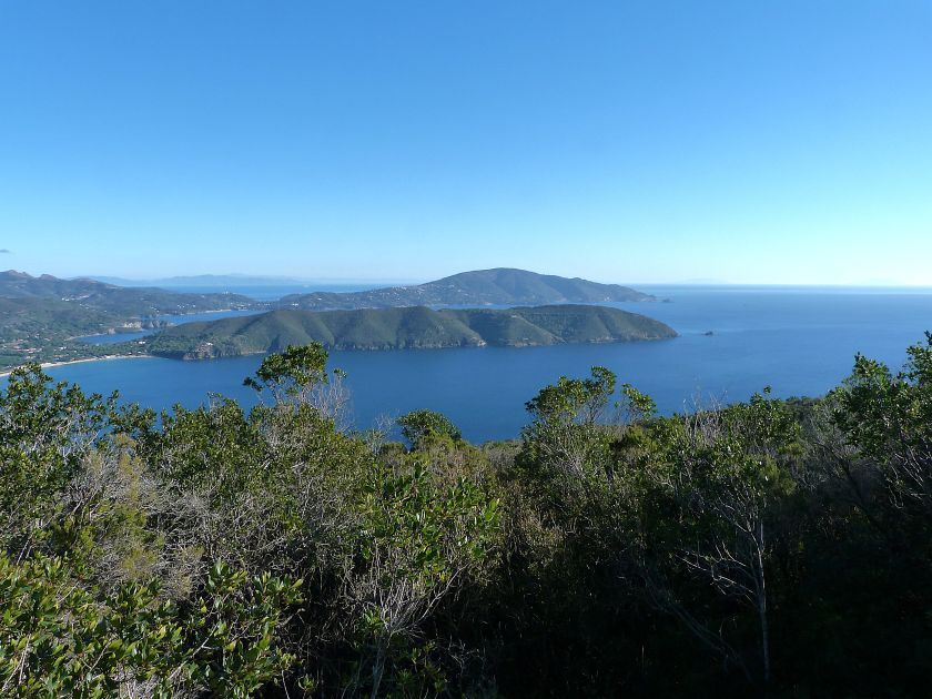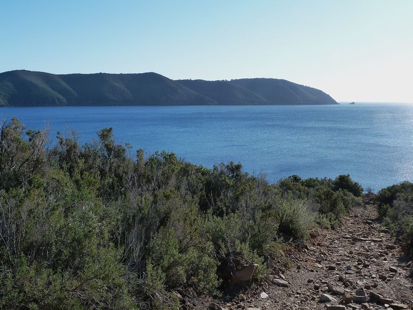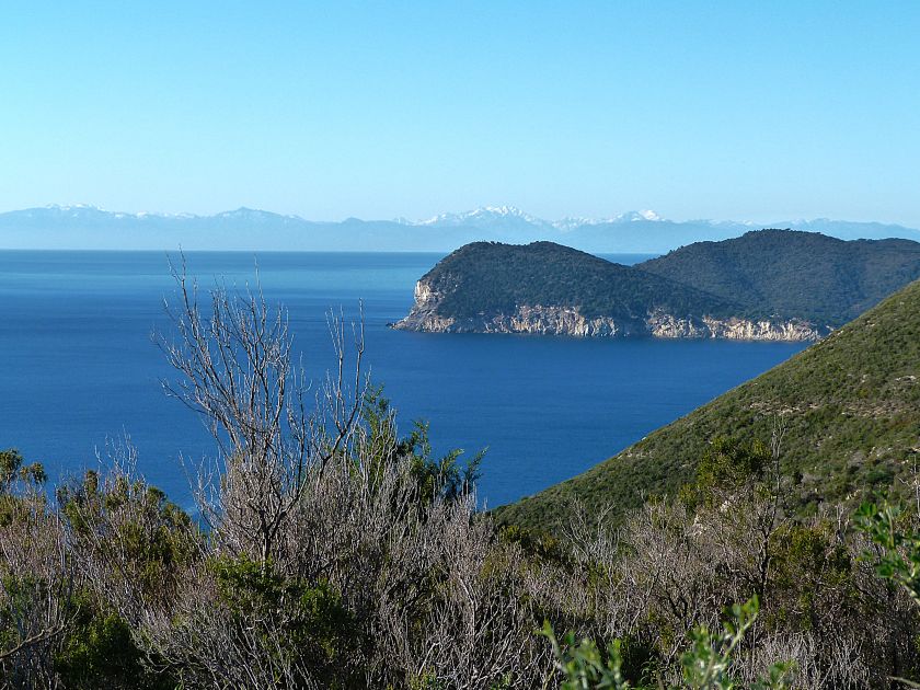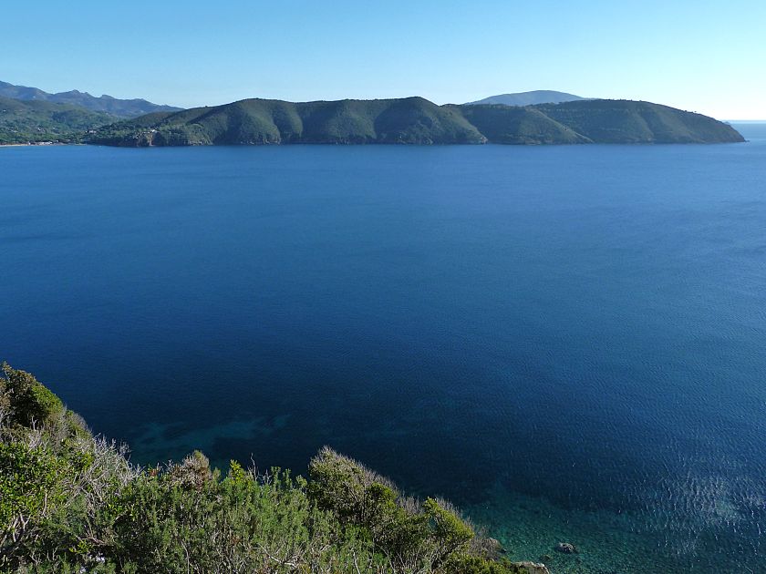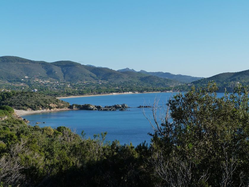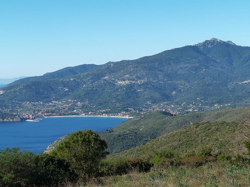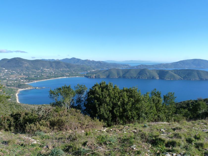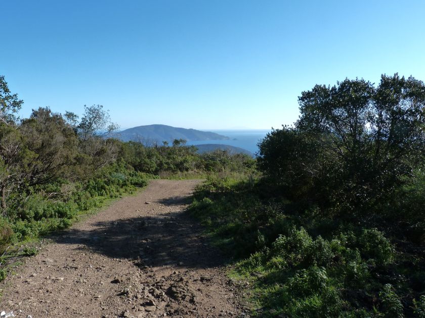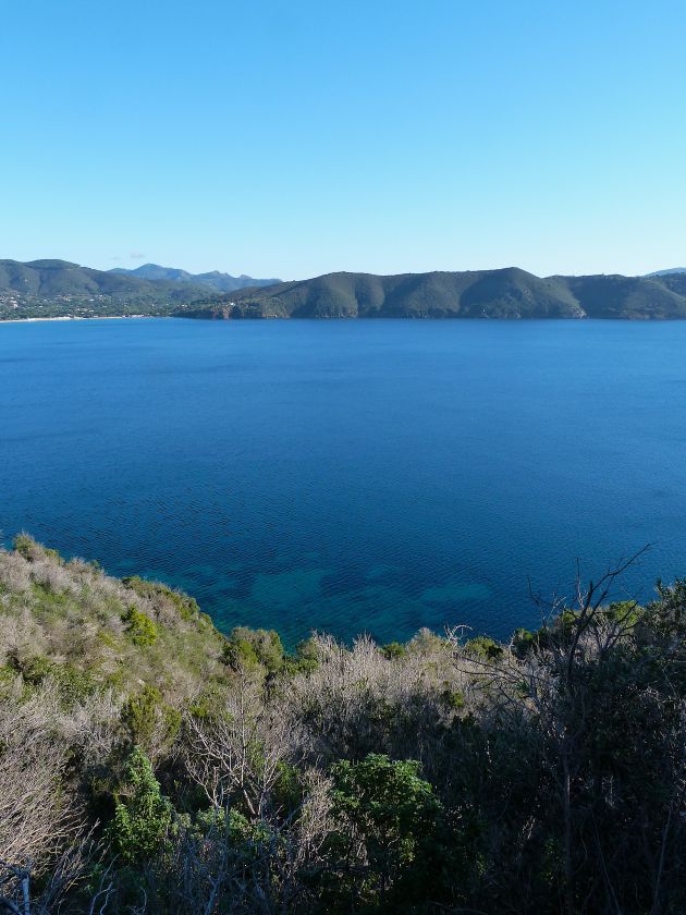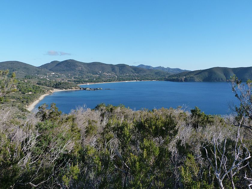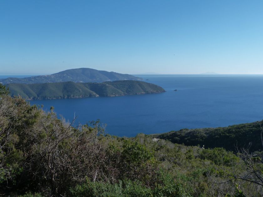Il promontorio di Fonza, nell’ambito dell’Isola d’Elba, divide il Golfo di Lacona dal Golfo di Stella ed è incluso nel Parco Nazionale dell’Arcipelago Toscano. Il suo punto culminante è il Monte Tambone tuttavia il panorama più vasto e coinvolgente è di sicuro quello che si gode dalla cima del Monte Fonza. La quota contenuta non impedisce una vista estesa a gran parte del versante meridionale dell’Elba con i suoi promontori e le sue insenature. Nei giorni limpidi la vista si allarga sino ad osservare l’isola del Giglio e l’Isola di Montecristo mentre ad occidente si stagliano le vette più alte della Corsica. È un’escursione senz’altro consigliabilissima e percorribile in pratica per tutto l’anno. La stagione meno indicata resta in ogni caso l’estate per le temperature elevate; l’inverno al contrario è una stagione raramente presa in considerazione ma splendida permettendo di godere di un paesaggio sempreverde e al contempo di un silenzio e una solitudine che normalmente non caratterizzano una zona così turistica come l’Isola d’Elba. L’escursione in breve: Laconella (m 14) – sentiero n° 250 – bivio con sentiero 243 (inizio itinerario ad anello – m 91) – bivio sentiero 250 / 248A (m 160) – belvedere di Capo di Fonza (m 165) - bivio sentiero 250 / 248A (m 160) - Monte Fonza (m 296) – elevazione senza toponimo (m 321) – selletta senza nome (m 300) – bivio con sentiero n° 246 (m 341) – Monte Tambone (m 378) - bivio con sentiero n° 246 (m 341) – selletta senza nome (m 300) – sentiero n° 243 – bivio sentiero 243 / 250 (m 91) – Laconella (m 14) Partenza da Laconella (m 14): Difficoltà: E (Vai alla scala delle difficoltà). Segnaletica: tutti i bivi sono segnalati con cartelli tuttavia la segnaletica appare nel complesso scarsa e poco evidente (dicembre 2024). Dislivello assoluto: m 364. Acqua sul percorso: assente Accesso: Da Portoferraio seguiamo le indicazioni per Porto Azzurro seguendo la SP 26. Dopo pochi km volgiamo a destra sulla SP 30 con indicazioni per Marina di Campo. Raggiungiamo la frazione di Lacona; la strada si sviluppa a poche decine di metri dalla spiaggia anche se quest’ultima non è ben osservabile per via dalla pineta e per la presenza di diversi campeggi. Al termine del rettilineo cessano i lidi e si raggiunge, poco oltre, il bivio a sinistra di Via Laconella con cartello indicante l’omonimo campeggio. L’escursione ha inizio proprio in coincidenza dell’incrocio con cartello escursionistico indicante Capo di Fonza a ore 1.20 e Monte Tambone a ore 2. Descrizione del percorso: La prima frazione di cammino ricalca il tracciato di Via Laconella. In estate il transito è proibito alle automobili con l’eccezione dei residenti mentre in inverno l’accesso è libero con la possibilità di abbreviare il tracciato a piedi percorrendo un lungo tratto di sterrata. Non mancano alcuni scorci osservando, a sinistra, le rocce che caratterizzano la Punta della Contessa. La strada si articola tra alcune abitazioni private mentre verso meridione la vista si allarga sino ad osservare, all’orizzonte, l’Isola di Montecristo. Un paio di digressioni permettono, volendo, di calare in qualche minuto sino al litorale sottostante. Da rilevare lo scorcio verso la Spiaggia di Laconella osservando inoltre le splendide colorazioni del fondale. Osserviamo inoltre come la prima citata Punta della Contessa divida la Spiaggia di Laconella dalla Spiaggia Grande di Lacona. Verso oriente il panorama è in gran parte occupato dallo splendido promontorio di Capo Stella rivestito di un’alberatura particolarmente folta. Proseguiamo lungamente con la strada che diviene dissestata e non più percorribile alle automobili. Non vi è alcuna traccia di segnaletica ma il percorso è ovvio ricalcando fedelmente la sterrata. In coincidenza di un tornante abbandoniamo la carrareccia volgendo a sinistra sul sentiero che mantiene il segnavia n° 250 (m 91 - ore 0,30 dalla partenza). Il bivio è segnalato dai cartelli con indicato il “Punto panoramico Capo di Fonza” a ore 0,50 di cammino. Pochi metri di sentiero e incontriamo immediatamente un’ulteriore biforcazione che lascia di primo acchito nell’ambiguità per l’assenza di segnalazioni. Occorre ignorare la possibilità di sinistra mantenendo il tracciato che si inoltra nel mezzo della macchia. La segnaletica è ridotta al minimo ma nel proseguo non si affrontano problemi d’orientamento in quanto il sentiero appare ben marcato e privo per un lungo tratto d’ulteriori bivi. Si procede con dislivelli nel complesso contenuti affacciandosi a sinistra su un braccio di mare caratterizzato da magnifiche colorazioni tra il blu e il turchese. Se la prima frazione su sterrata non aveva entusiasmato ecco che questa frazione di sentiero appare invece di indiscutibile bellezza grazie alla vista del grande Golfo di Lacona. L’ambiente selvaggio e una macchia particolarmente rigogliosa rendono il cammino molto piacevole anche in pieno inverno. Avanzando verso meridione compare, alle spalle di Capo Stella, il promontorio di Capoliveri. Dopo una lunga frazione in debole saliscendi il sentiero cambia improvvisamente pendenza salendo ripido verso destra. È un tratto un po’ più faticoso ma si rivela relativamente breve in quanto si accede con rapidità ad un’ampia sella poco accentuata sulla dorsale che scende dal Monte Tambone a Capo Fonza (m 160 – ore 1,20 dalla partenza). Il paesaggio si apre per la prima volta verso occidente osservando, a breve distanza, la Punta delle Mete con, di fronte ad essa, lo Scoglio della Triglia. Più distante notiamo, al di là del Golfo di Campo, il pronunciato Capo di Poro mentre sullo sfondo svettano addirittura le cime della Corsica a chiudere l’orizzonte. Siamo inoltre ad un’importante biforcazione. I cartelli segnalano verso destra il Monte Fonza a 20 minuti di cammino mentre a sinistra è indicato Capo Fonza a 10 minuti. Scegliamo quest’ultima pos