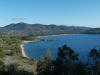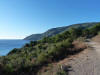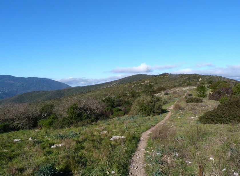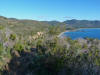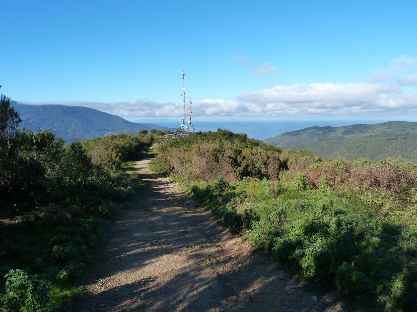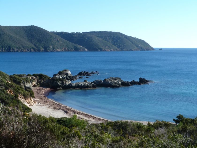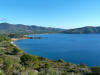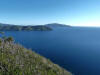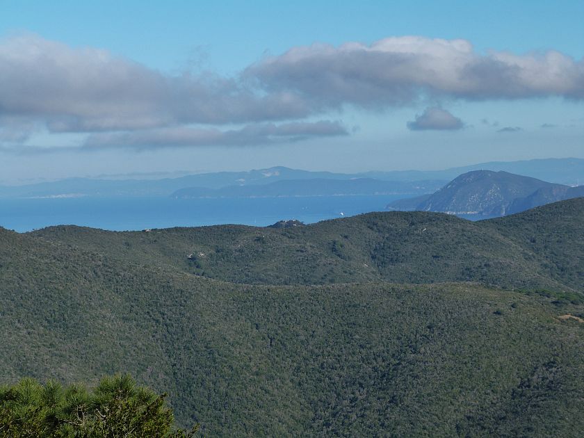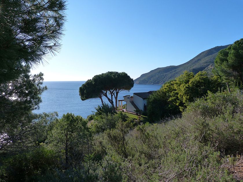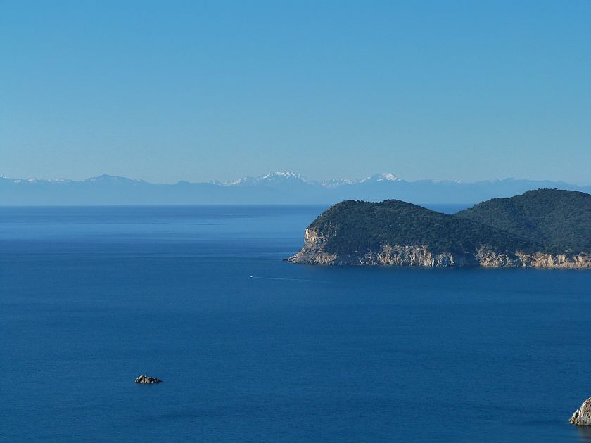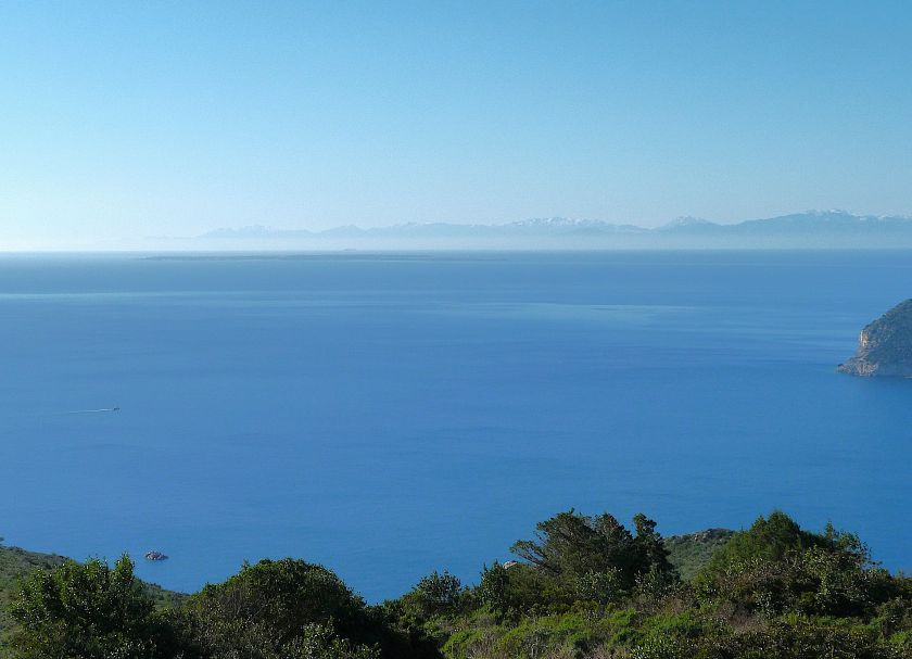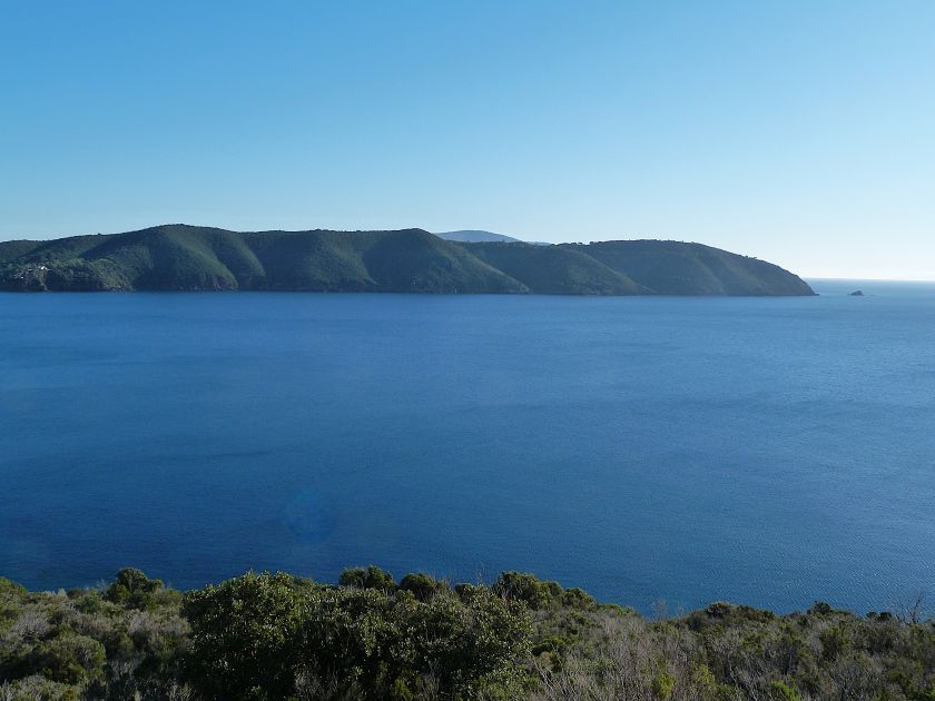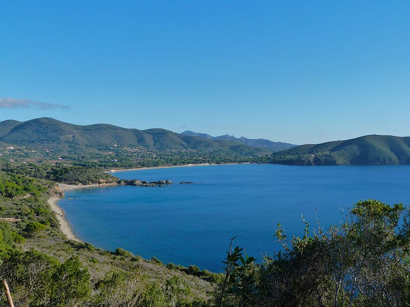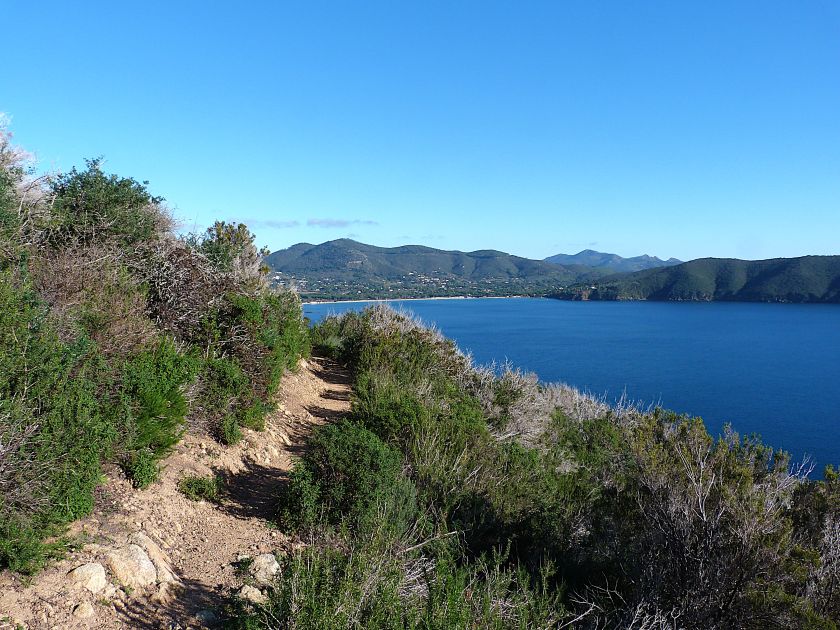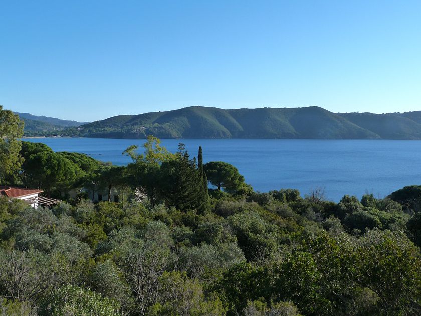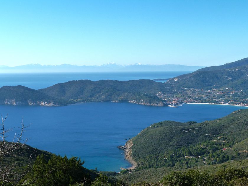 Il promontorio di Fonza, nell’ambito dell’Isola d’Elba, divide il Golfo di Lacona dal Golfo di Stella ed è incluso nel Parco Nazionale dell’Arcipelago Toscano. Il suo punto culminante è il Monte Tambone tuttavia il panorama più vasto e coinvolgente è di sicuro quello che si gode dalla cima del Monte Fonza. La quota contenuta non impedisce una vista estesa a gran parte del versante meridionale dell’Elba con i suoi promontori e le sue insenature. Nei giorni limpidi la vista si allarga sino ad osservare l’isola del Giglio e l’Isola di Montecristo mentre ad occidente si stagliano le vette più alte della Corsica. È un’escursione senz’altro consigliabilissima e percorribile in pratica per tutto l’anno. La stagione meno indicata resta in ogni caso l’estate per le temperature elevate; l’inverno al contrario è una stagione raramente presa in considerazione ma splendida permettendo di godere di un paesaggio sempreverde e al contempo di un silenzio e una solitudine che normalmente non caratterizzano una zona così turistica come l’Isola d’Elba. L’escursione in breve: Laconella (m 14) – sentiero n° 250 – bivio con sentiero 243 (inizio itinerario ad anello – m 91) – bivio sentiero 250 / 248A (m 160) – belvedere di Capo di Fonza (m 165) - bivio sentiero 250 / 248A (m 160) - Monte Fonza (m 296) – elevazione senza toponimo (m 321) – selletta senza nome (m 300) – bivio con sentiero n° 246 (m 341) – Monte Tambone (m 378) - bivio con sentiero n° 246 (m 341) – selletta senza nome (m 300) – sentiero n° 243 – bivio sentiero 243 / 250 (m 91) – Laconella (m 14) Partenza da Laconella (m 14): Difficoltà: E (Vai alla scala delle difficoltà). Segnaletica: tutti i bivi sono segnalati con cartelli tuttavia la segnaletica appare nel complesso scarsa e poco evidente (dicembre 2024). Dislivello assoluto: m 364. Acqua sul percorso: assente Accesso: Da Portoferraio seguiamo le indicazioni per Porto Azzurro seguendo la SP 26. Dopo pochi km volgiamo a destra sulla SP 30 con indicazioni per Marina di Campo. Raggiungiamo la frazione di Lacona; la strada si sviluppa a poche decine di metri dalla spiaggia anche se quest’ultima non è ben osservabile per via dalla pineta e per la presenza di diversi campeggi. Al termine del rettilineo cessano i lidi e si raggiunge, poco oltre, il bivio a sinistra di Via Laconella con cartello indicante l’omonimo campeggio. L’escursione ha inizio proprio in coincidenza dell’incrocio con cartello escursionistico indicante Capo di Fonza a ore 1.20 e Monte Tambone a ore 2. Descrizione del percorso: La prima frazione di cammino ricalca il tracciato di Via Laconella. In estate il transito è proibito alle automobili con l’eccezione dei residenti mentre in inverno l’accesso è libero con la possibilità di abbreviare il tracciato a piedi percorrendo un lungo tratto di sterrata. Non mancano alcuni scorci osservando, a sinistra, le rocce che caratterizzano la Punta della Contessa. La strada si articola tra alcune abitazioni private mentre verso meridione la vista si allarga sino ad osservare, all’orizzonte, l’Isola di Montecristo. Un paio di digressioni permettono, volendo, di calare in qualche minuto sino al litorale sottostante. Da rilevare lo scorcio verso la Spiaggia di Laconella osservando inoltre le splendide colorazioni del fondale. Osserviamo inoltre come la prima citata Punta della Contessa divida la Spiaggia di Laconella dalla Spiaggia Grande di Lacona. Verso oriente il panorama è in gran parte occupato dallo splendido promontorio di Capo Stella rivestito di un’alberatura particolarmente folta. Proseguiamo lungamente con la strada che diviene dissestata e non più percorribile alle automobili. Non vi è alcuna traccia di segnaletica ma il percorso è ovvio ricalcando fedelmente la sterrata. In coincidenza di un tornante abbandoniamo la carrareccia volgendo a sinistra sul sentiero che mantiene il segnavia n° 250 (m 91 - ore 0,30 dalla partenza). Il bivio è segnalato dai cartelli con indicato il “Punto panoramico Capo di Fonza” a ore 0,50 di cammino. Pochi metri di sentiero e incontriamo immediatamente un’ulteriore biforcazione che lascia di primo acchito nell’ambiguità per l’assenza di segnalazioni. Occorre ignorare la possibilità di sinistra mantenendo il tracciato che si inoltra nel mezzo della macchia. La segnaletica è ridotta al minimo ma nel proseguo non si affrontano problemi d’orientamento in quanto il sentiero appare ben marcato e privo per un lungo tratto d’ulteriori bivi. Si procede con dislivelli nel complesso contenuti affacciandosi a sinistra su un braccio di mare caratterizzato da magnifiche colorazioni tra il blu e il turchese. Se la prima frazione su sterrata non aveva entusiasmato ecco che questa frazione di sentiero appare invece di indiscutibile bellezza grazie alla vista del grande Golfo di Lacona. L’ambiente selvaggio e una macchia particolarmente rigogliosa rendono il cammino molto piacevole anche in pieno inverno. Avanzando verso meridione compare, alle spalle di Capo Stella, il promontorio di Capoliveri. Dopo una lunga frazione in debole saliscendi il sentiero cambia improvvisamente pendenza salendo ripido verso destra. È un tratto un po’ più faticoso ma si rivela relativamente breve in quanto si accede con rapidità ad un’ampia sella poco accentuata sulla dorsale che scende dal Monte Tambone a Capo Fonza (m 160 – ore 1,20 dalla partenza). Il paesaggio si apre per la prima volta verso occidente osservando, a breve distanza, la Punta delle Mete con, di fronte ad essa, lo Scoglio della Triglia. Più distante notiamo, al di là del Golfo di Campo, il pronunciato Capo di Poro mentre sullo sfondo svettano addirittura le cime della Corsica a chiudere l’orizzonte. Siamo inoltre ad un’importante biforcazione. I cartelli segnalano verso destra il Monte Fonza a 20 minuti di cammino mentre a sinistra è indicato Capo Fonza a 10 minuti. Scegliamo quest’ultima pos