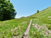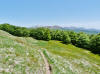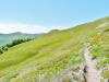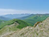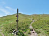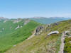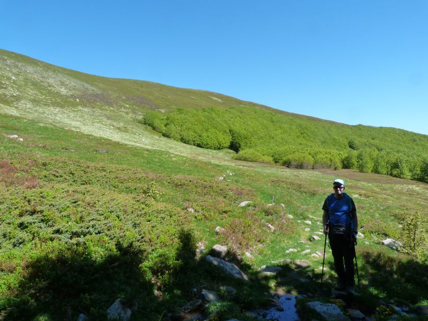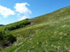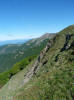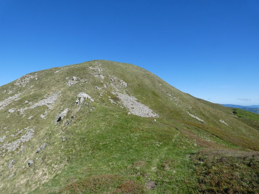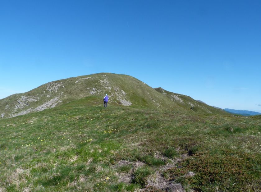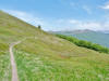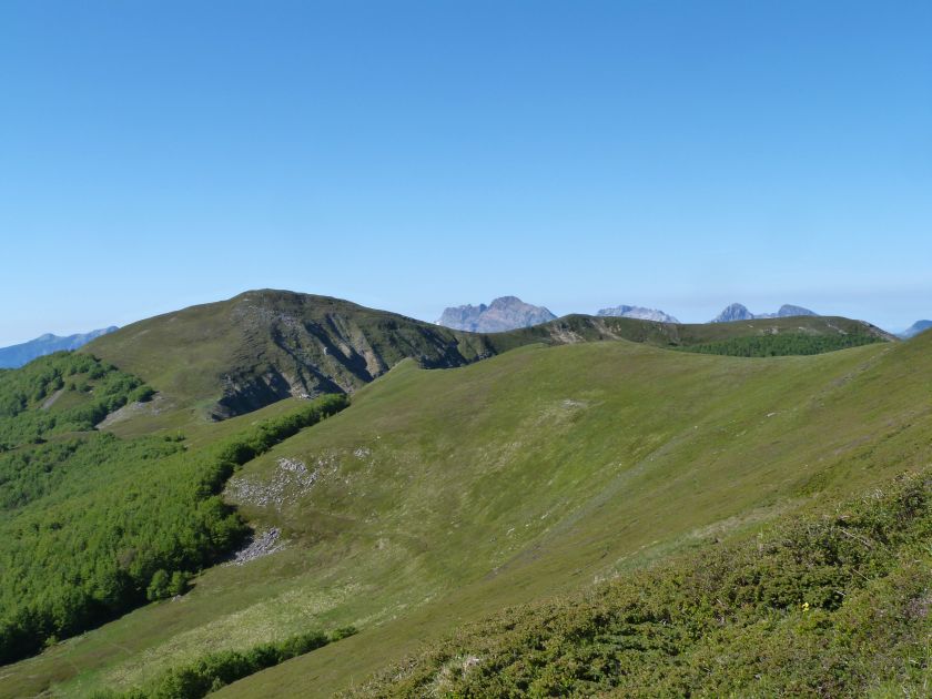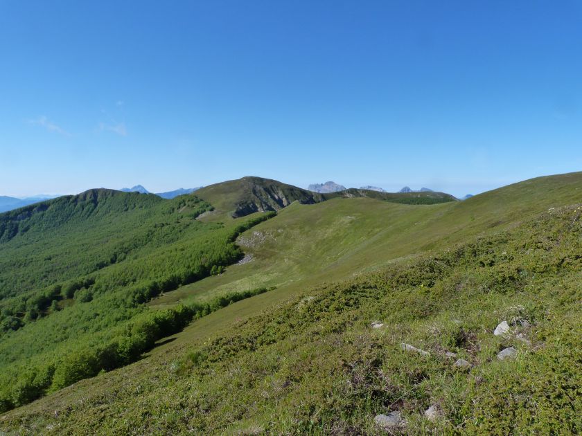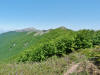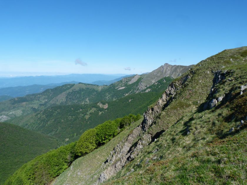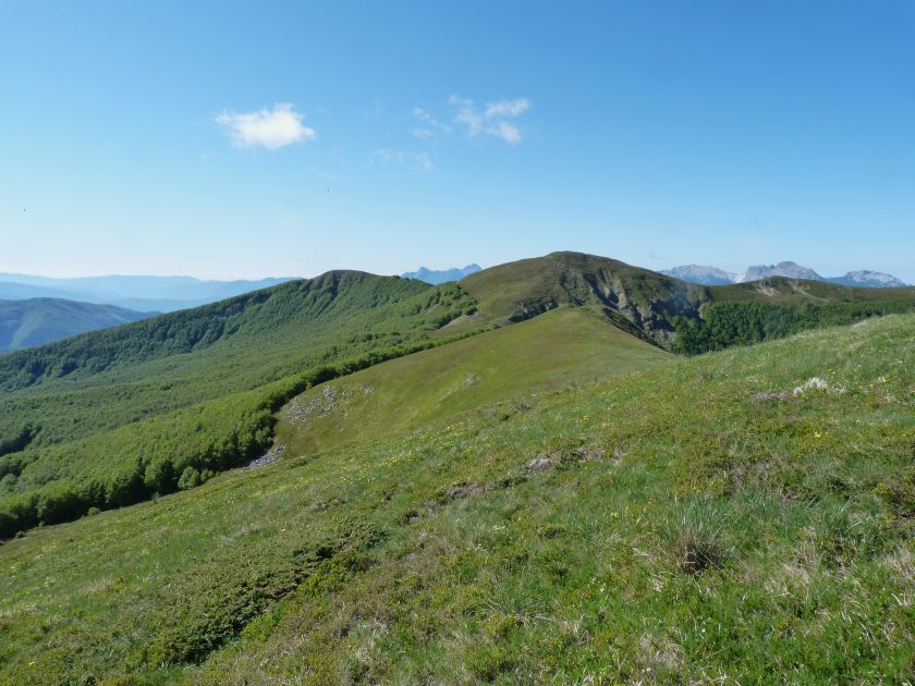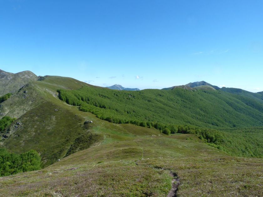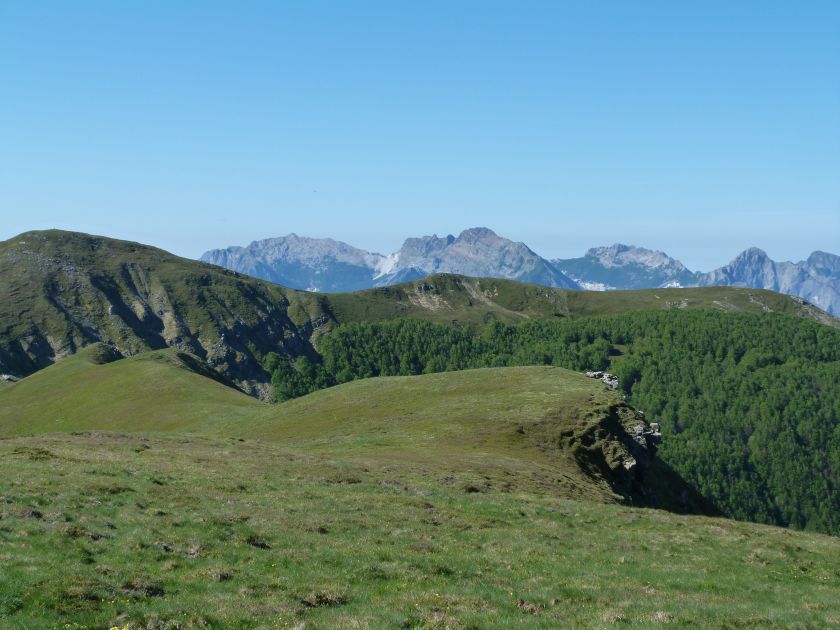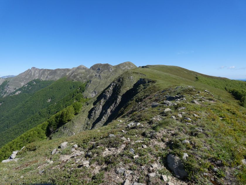 L’escursione che andiamo a narrarvi sorprende per l’ambiente insolitamente selvaggio ed isolato giustamente inserito nell’ambito del Parco Nazionale dell’Appennino Tosco Emiliano. Il cammino raggiunge il suo culmine nella Cima Belfiore, posta proprio lungo lo spartiacque principale. Nonostante la forma a cupola poco rilevata offre un panorama di insospettabile vastità in grado, nelle giornate più limpide, di estendersi dall’arco alpino a nord al Mar Ligure e alla Corsica verso sudovest. Prima del raggiungimento della Cima Belfiore se ne tocca la piccola anticima sudorientale denominata Termine Tre Potenze. Nonostante la poca appariscenza è un importantissimo nodo orografico. Dal punto più alto si diparte infatti, nel versante toscano, una lunga cresta a dividere la Garfagnana dalla Lunigiana. Il crinale tocca il Monte Tondo per poi calare sino a raggiungere la Foce dei Carpinelli, dove transita la SS 445 che unisce Bagni di Lucca ad Aulla. Al di là della Foce dei Carpinelli il pendio riprende quota nelle Alpi Apuane. Controversa appare l’origine del toponimo “Termine Tre Potenze”. Sulla vetta è infatti presente un cippo arenaceo che nel XVIII secolo fu posto al confine tra il Ducato di Modena e il Granducato di Toscana. Le “potenze” erano in effetti solo due a meno che il toponimo non si riferisca al fatto che la vetta domina tre grandi bacini idrografici: la Val Secchia nel versante reggiano, la Lungiana (Valle del Magra) e la Garfagnana. Il mistero è ancora più fitto se si pensa che il toponimo compare nelle mappe solo a partire dal 1936 mentre in una mappa del 1878 è citato solo il Monte Belfiore e in una carta del 600 si parla di Monte Gragnanese. Forse non si troverà mai una risposta, ma ancora più sorprendente è accorgersi che il toponimo si adatta perfettamente alla situazione amministrativa attuale. Il Termine Tre Potenze è infatti al momento il punto di unione e separazione delle province di Reggio Emilia, Lucca e Massa Carrara. Tralasciando l’aspetto storico e amministrativo l’escursione è senz’altro raccomandabile tra maggio e giugno quando la neve è ormai scomparsa potendo godere delle fioriture di inizio stagione. In alternativa il cammino risulta molto piacevole anche nelle terse giornate autunnali. Inutile ricordare che il percorso, sviluppandosi per un lungo tratto in pieno crinale appenninico spartiacque, è pericolosamente esposto alle nebbie e a forti venti di tempesta nelle giornate dal tempo instabile. In sintesi occorre attenzione alle previsioni del tempo per scegliere una giornata adatta al cammino. L’escursione in breve: Passo di Pradarena (m 1576) – Passo di Cavorsella (m 1505) – Passo del Gatto – Passo di Belfiore (m 1669) – Termine Tre Potenze (m 1773) – Cima Belfiore (m 1815) – Termine Tre Potenze (m 1773) - Monte Tondo (m 1782) – sentiero n° 86 – Passo di Belfiore (m 1669) – a ritroso sino al Passo di Pradarena (m 1576). Dati tecnici: Partenza dal Passo di Pradarena (m 1576): Difficoltà: E (Vai alla scala delle difficoltà); breve passaggio in lieve esposizione con difficoltà EE in coincidenza del Passo del Gatto. Segnaletica: totale. Dislivello assoluto: m 310; dislivello reale senza dubbio maggiore per via delle lunghe frazioni di crinale. Acqua potabile sul percorso: alla partenza; una sorgente lungo il sentiero 86. Accesso alla partenza: La partenza coincide con l’importante Passo di Pradarena, uno dei più alti valichi rotabili dell’Appennino Settentrionale. Usando l’autostrada A1 si esce a Reggio Emilia e si seguono le indicazioni per La Spezia e il Passo del Cerreto (SS 63). Arrivati al paese di Busana si abbandona la statale volgendo a sinistra sulla SP 18 per salire a Ligonchio (75 km da Reggio Emilia). Si tratta dell’ultimo paese, se si eccettua la piccola frazione di Ospitaletto, prima della salita che conduce direttamente al valico, al confine tra l’Emilia e la Toscana. Naturalmente si può salire al valico anche dal versante toscano. In questo caso si raggiunge, con la SS 445 della Garfagnana, il paese di Piazza al Serchio. Si abbandona la statale per salire dapprima a Sillano quindi, in 4,5 km, sino a Capanne di Sillano. La strada procede in ripida salita guadagnando, in ulteriori 7 km, il Passo di Pradarena. Descrizione del percorso: In coincidenza del Passo di Pradarena (m 1576) si separa verso occidente un’ampia sterrata chiusa al traffico che entra nella bella e lussureggiante faggeta. Si tratta del segnavia 00 di crinale che in questa prima frazione si articola dapprima in piano quindi in debole discesa sino a raggiungere, sempre nel bosco, il punto più basso dell’escursione. Siamo al Passo di Cavorsella (m 1505 – ore 0,20 dalla partenza), importante crocevia di sentieri ben segnalato dai cartelli. Ignoriamo il sentiero 647 che si separa a destra mantenendo il segnavia 00 con l’ampia mulattiera che lascia spazio ad un buon sentiero. Ci innalziamo ripidamente nel pendio boscoso con il paesaggio, in questa prima frazione, impedito dalla fitta alberatura. In breve guadagniamo il margine superiore della faggeta. Subito oltre siamo nella prateria d’altitudine con il sentiero ridotto ad una striscia nel manto erboso e con panorama che si apre all’improvviso divenendo vasto e suggestivo. Verso meridione spiccano le Alpi Apuane mentre alle spalle osserviamo il Monte Cusna seconda cima, in ordine di altezza, dell’Appennino Settentrionale. Facile e ben tracciato, il percorso si articola di poco sotto crinale aggirando nel versante toscano le pendici del Monte Ischia. Tra distese di mirtillo e bassa vegetazione cespugliosa ci portiamo verso lo spartiacque che andiamo infine a toccare in coincidenza della marcata selletta che divide il Monte Scalocchi dal Monte Ischia. Possiamo osservare un bel paesaggio verso Cima Belfiore e il Monte La Nuda. Subito oltre il sentiero segnato torna ad abbandonare il crinale debordando nel versante toscano per aggirare le ripide pe