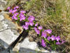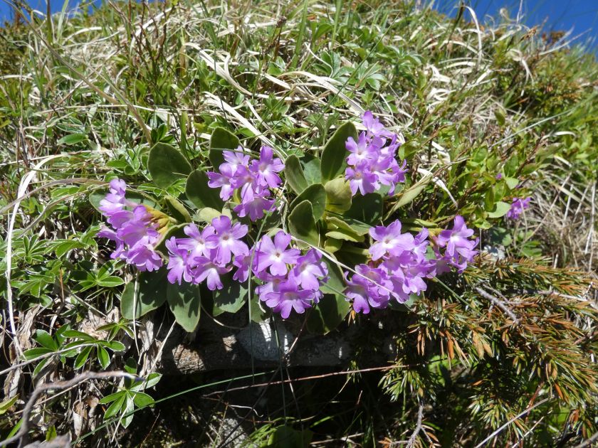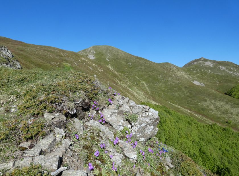 L’area interessata dall’escursione è inclusa per buona parte nel Parco Nazionale dell’Appennino Tosco Emiliano a proteggere un ambiente sostanzialmente integro e di rilevante interesse per la flora d’altitudine. Segue una lista parziale delle principali specie osservate in occasione della nostra salita avvenuta nella prima parte del mese di giugno. Specie endemiche: 1) Primula appenninica (Primula apennina); si tratta dell’unica primula di colore rosso presente nell’Appennino Tosco Emiliano. É un raro endemismo presente sul crinale reggiano e parmense con sconfinamenti nel versante toscano (province di Lucca e di Massa Carrara) osservabile per lo più sulle rupi d’arenaria ad esposizione settentrionale. Nella nostra escursione è presente in coincidenza di una rupe esposta a nord che si incontra a destra del sentiero subito dopo aver superato il Passo di Belfiore. Gran parte delle piante sono inaccessibili per l’esposizione a strapiombo delle rocce. Altri esemplari più isolati sono osservabili nel versante toscano nelle rupi comprese tra il Termine Tre Potenze e la selletta che precede la salita al Monte Tondo. In questo caso il numero di esemplari è più basso per via dell’esposizione a sud del settore. Come detto Primula apennina preferisce infatti posizioni fresche e possibilmente ombrose rivolte a settentrione ragion per cui è presente con maggiore frequenza nel versante emiliano che non in quello toscano. Inutile dire che si tratta di una specie protetta che non deve, per nessuna ragione, essere raccolta per il forte rischio d’estinzione. La fioritura avviene normalmente tra fine maggio e inizio giugno. 2) Ranuncolo del Pollino (Ranunculus pollinensis). Endemico dell’Italia peninsulare trova nell’Appennino Tosco Emiliano le sue estreme stazioni settentrionali. 3) Raponzolo a foglie di scorzonera (Phyteuma scorzonerifolium); è una specie subendemica con areale che in Italia interessa essenzialmente le Alpi Occidentali, l’Appennino Settentrionale e le Alpi Apuane. 4) Pinguicola di Cristina (Pinguicula christinae). Una delle poche piante carnivore presenti in Italia; le sue foglie appiccicose sono una trappola per gli insetti più piccoli; la pianta produce poi enzimi atti a digerire le prede. Le entità presenti sul crinale tosco emiliano, precedentemente attribuite a Pinguicula vulgaris, sono state inquadrate in questa specie descritta di recente ed endemica in senso stretto dei rilievi emiliani e toscani. La specie è osservabile lungo il sentiero 86 nel tratto compreso tra il Monte Tondo e il Passo Belfiore in coincidenza di una risorgiva. 5) Erba cornacchia di Zanoni (Murbeckiella zanonii). È una specie endemica molto importante con centro di distribuzione nell’Appennino Tosco Romagnolo; l’areale di presenza della specie si estende comunque verso occidente sino al reggiano (Alpe di Succiso). Lungo l’itinerario descritto è presente lungo il sentiero 86 nel tratto compreso tra il Monte Tondo e il Passo Belfiore in coincidenza di un ruscello. Altre specie osservate: 1) Genziana di Koch (Gentiana acaulis) 2) Anemone narcissino (Anemone narcissiflora) tra il Passo Belfiore e il Termine Tre Potenze. 3) Genzianella (Gentiana verna) 4) Lino alpino (Linum alpinum) 5) Scorzonera rosea (Scorzonera rosea) 6) Sassifraga alpina (Saxifraga paniculata) nelle fasce arenacee presso il Passo del Gatto. 7) Sassifraga muschiata (Saxifraga moschata) nelle fasce arenacee presso il Passo del Gatto. 8) Sassifraga a foglie rotonde (Saxifraga rotundifolia) 9) Acetosella (Oxalis acetosella) 10) Orchidea sambucina (Dactylorhiza sambucina); appare abbondante ed è presente nelle due versioni di colore giallo oppure violaceo. 11) Orchidea maschia (Orchis mascula) 12) Anemone bianca (Anemone nemorosa) 13) Anemone delle Alpi (Pulsatilla alpina) 14) Carlina segnatempo (Carlina acaulis) 15) Viola con sperone (Viola calcarata) 16) Mirtillo nero (Vaccinium myrtillus) 17) Cariofillata montana (Geum montanum) 18) Piede di gatto (Antennaria dioica) 19) Tossillaggine alpina (Homogyne alpina) 20) Finocchio montano (Meum athamanticum) 21) Primula maggiore (Primula elatior) 22) Croco (Crocus vernus) 23) Pepe di monte (Daphne mezereum) 24) Fragolina di bosco (Fragaria vesca) 25) Giglio martagone (Lilium martagon) 26) Draba gialla (Draba aizoides) 27) Astro alpino (Aster alpinus) 28) Lino alpino (Linum alpinum) 29) Arabetta alpina (Arabis alpina) 30) Acino alpino (Acinos alpinus) 31) Calta (Caltha palustris) 32) Succiamele rossastro (Orobanche gracilis) 33) Erba di San Giovanni Belleval (Hypericum richeri) 34) Anemone gialla (Anemone ranuncoloides) 35) Valeriana trifogliata (Valeriana tripteris) 36) Doronico di colonna (Doronicum columnae) 37) Betonica densiflora (Stachys pradica)